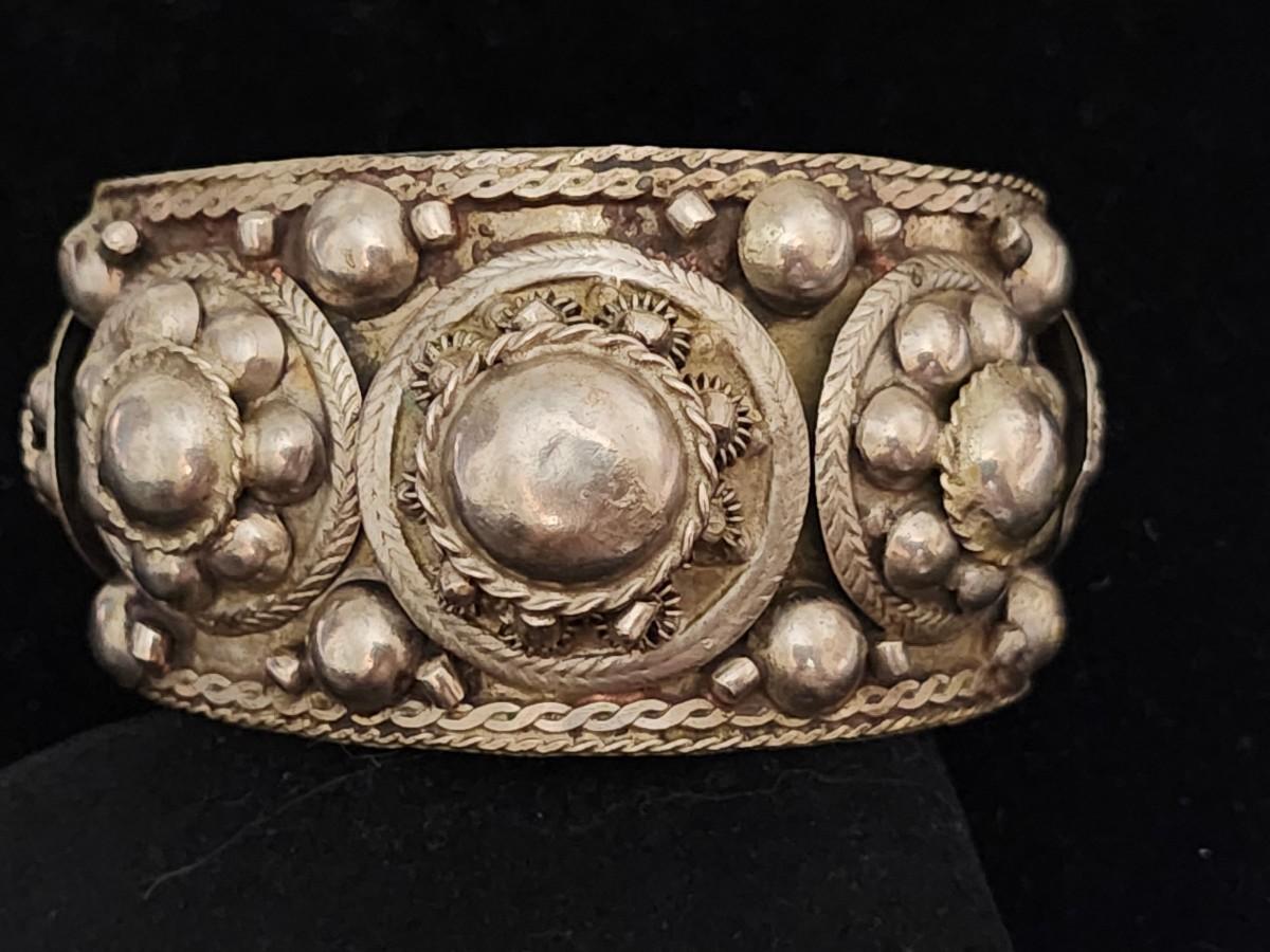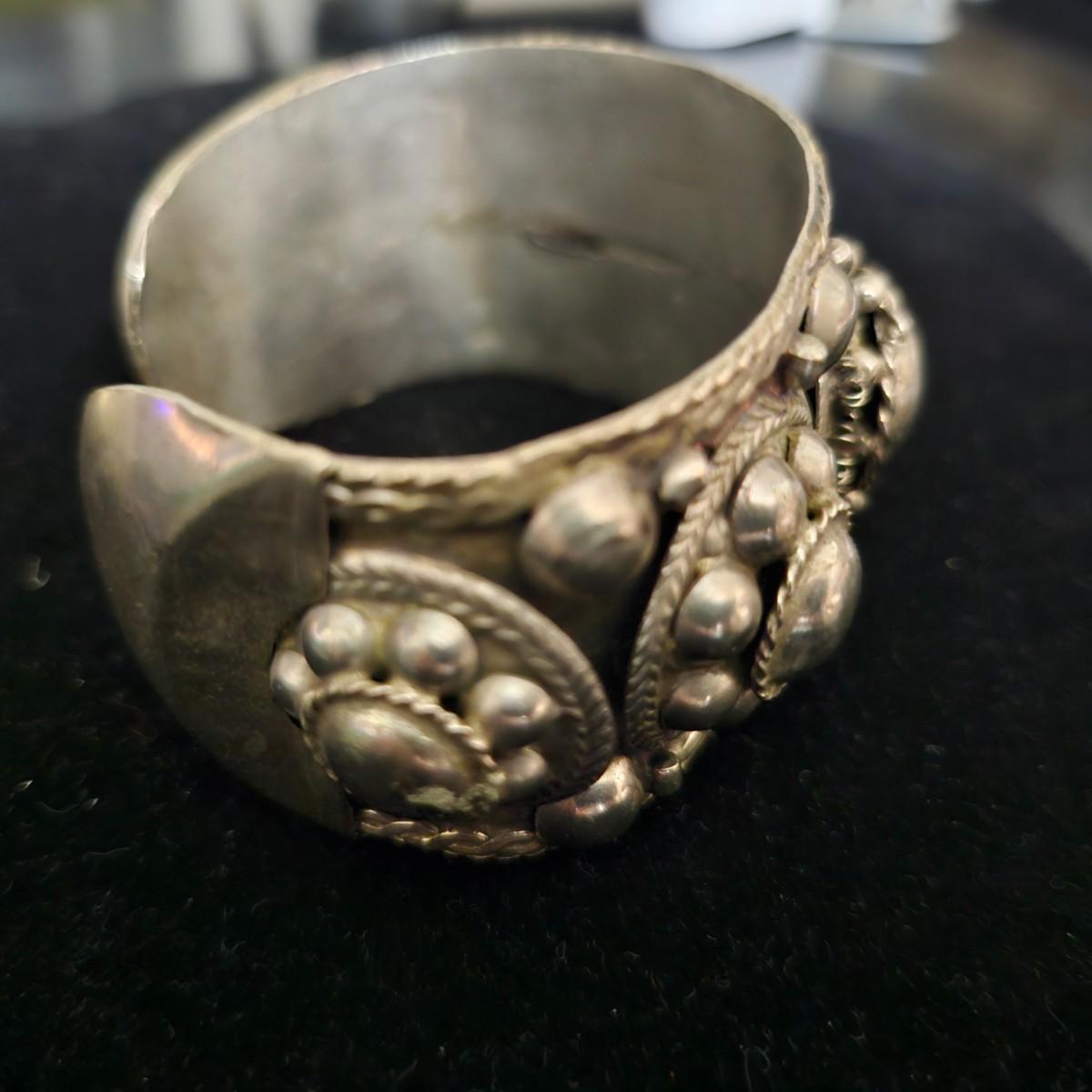This is a vintage piece; it shows signs of being loved and worn often. the opening is 3/4 of an inch, the interior measures 6 1/4 inches.