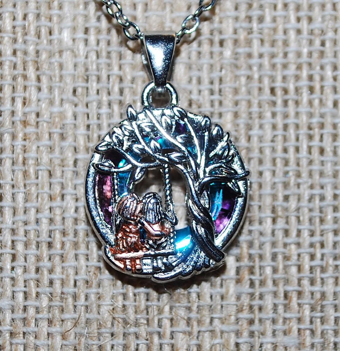 "SIBLINGS" Style PENDANT / NECKLACE with Silver Tone Necklace Chain & Lobster Clasp 17" L