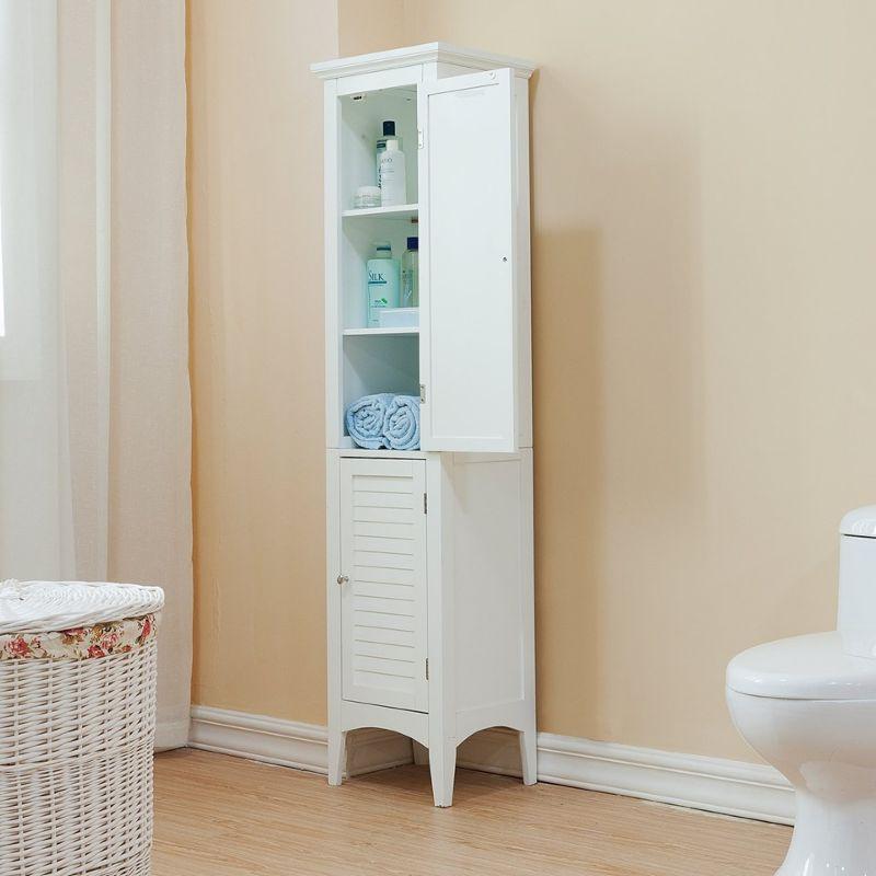 Elegant Home Fashions Sicily Floor Cabinet with 2 Shutter Doors, White - Minor Damage as Shown on 1 side
