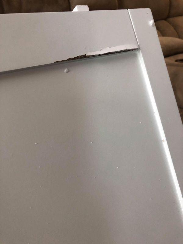Sicily Floor Cabinet with 2 Shutter Doors, White - Minor Damage as Shown on 1 side