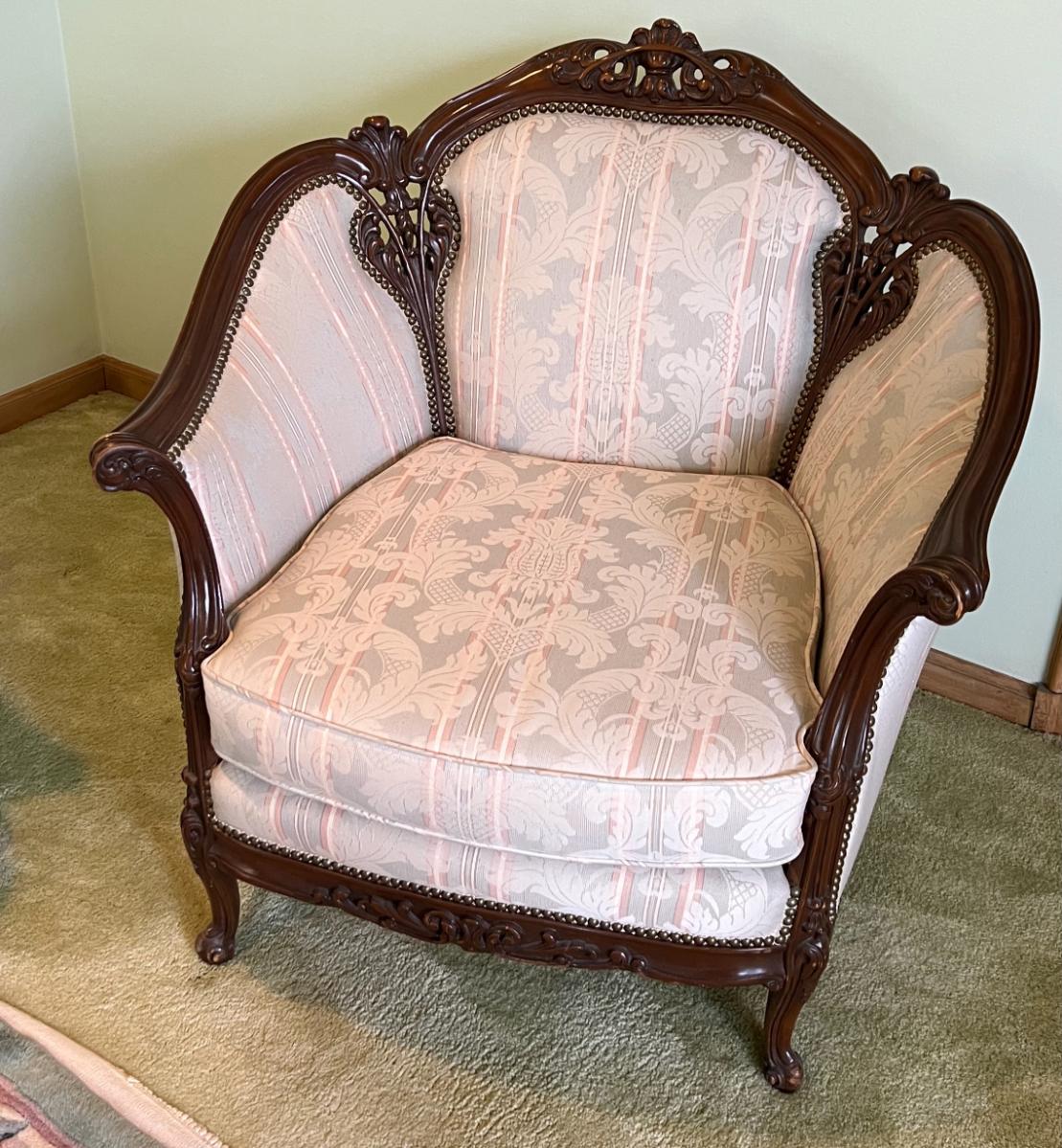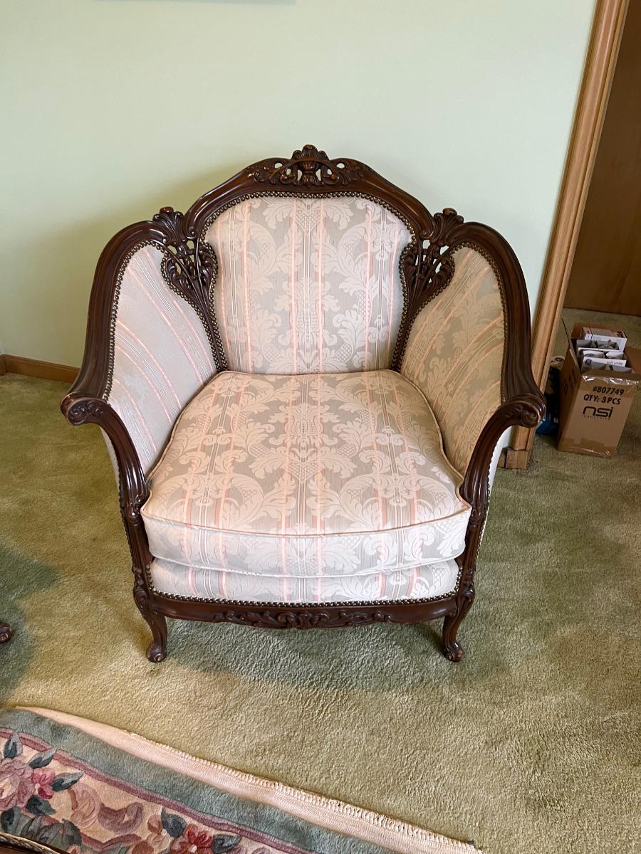 Side Chair Carved Wood Trim , Upholstered - (Matching to the Sofa)