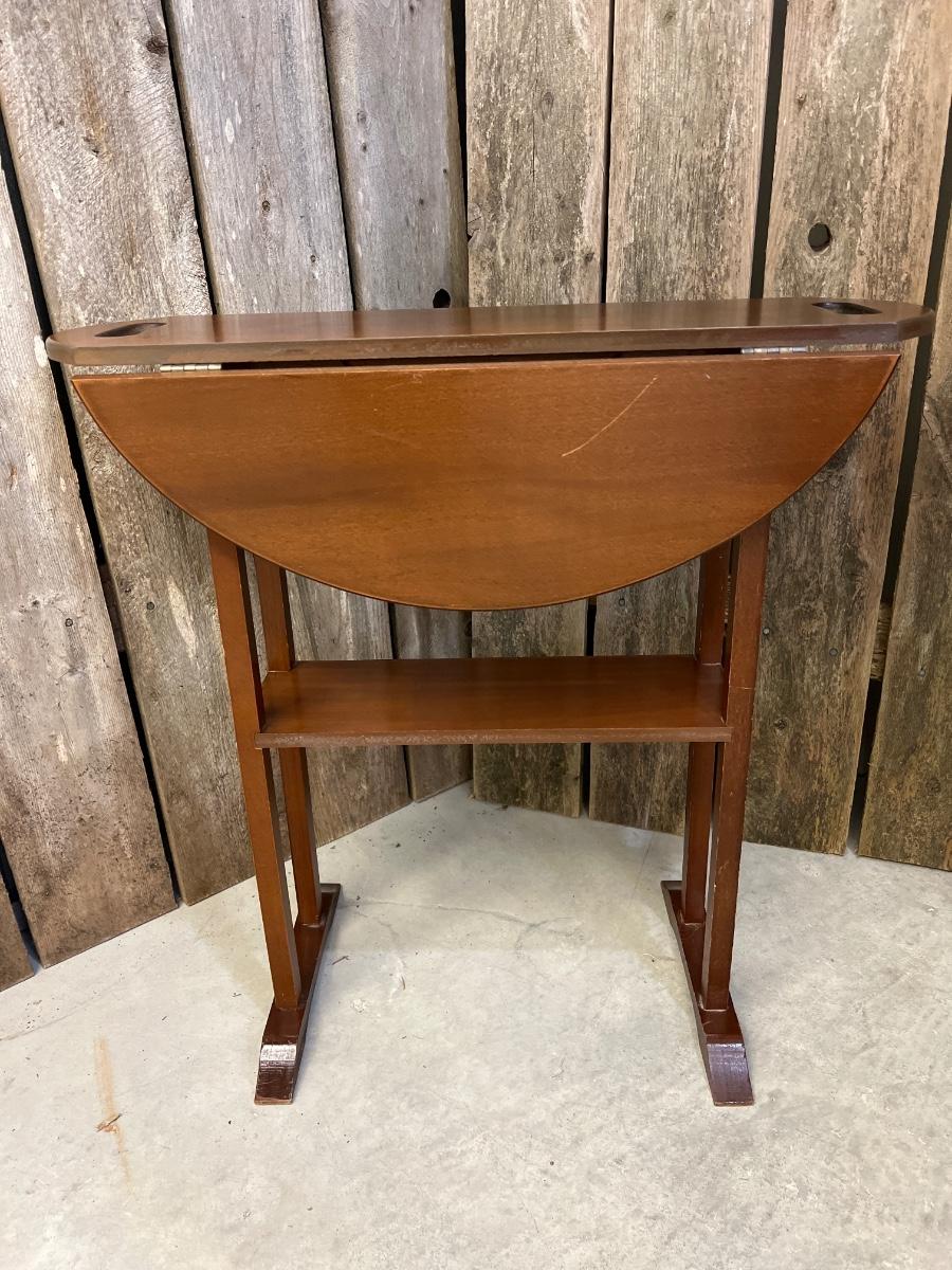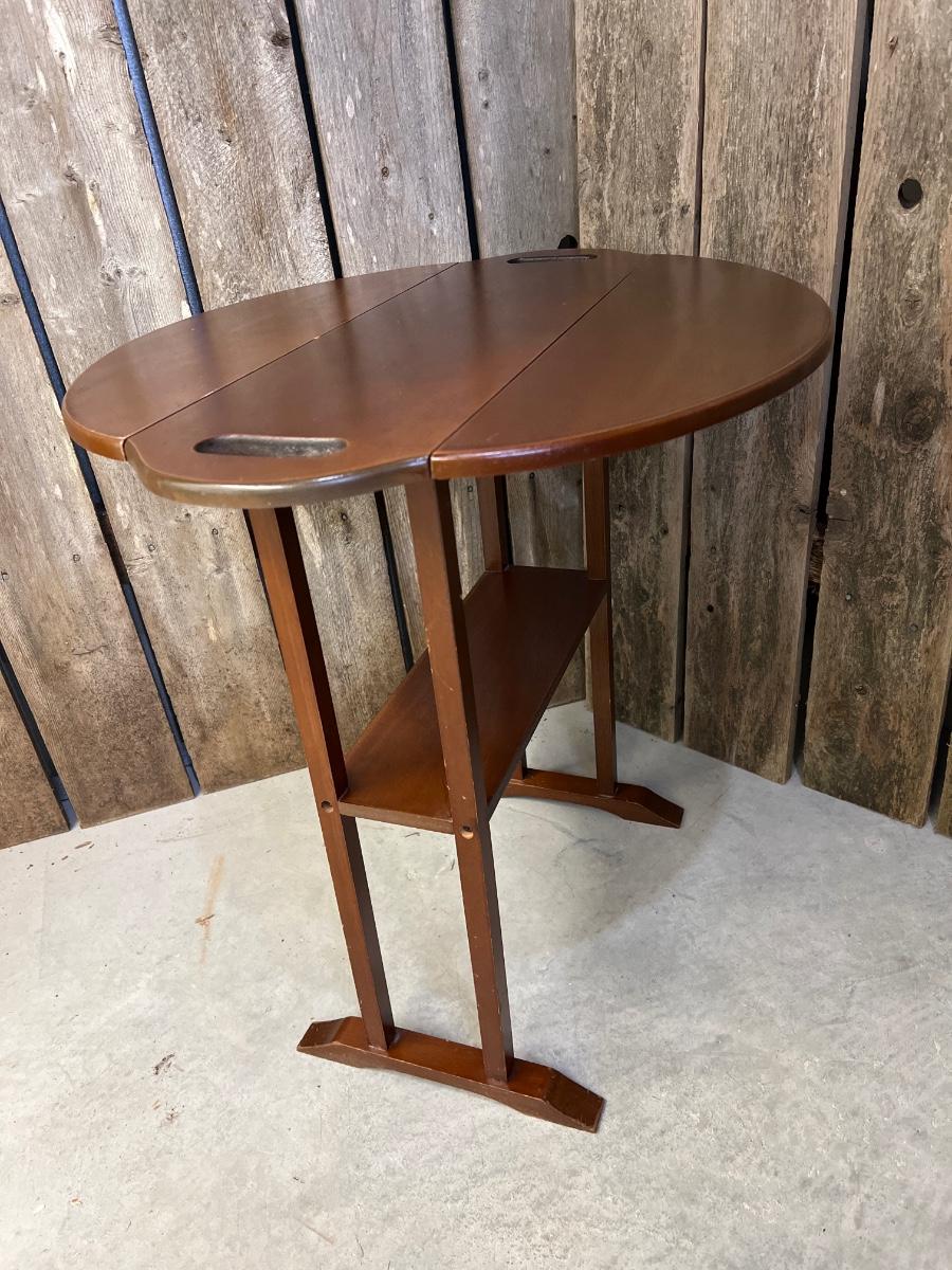 Small Vintage Drop Side Wood Table with Handles #1