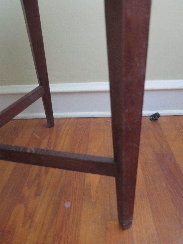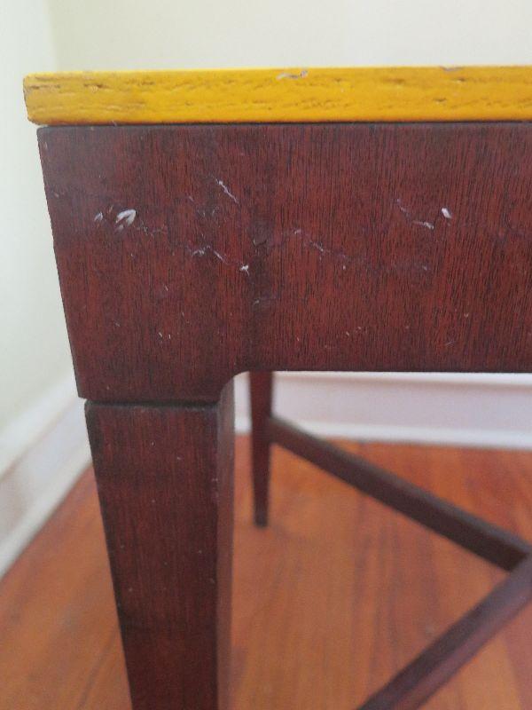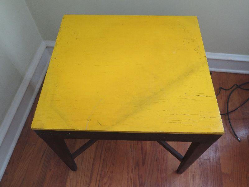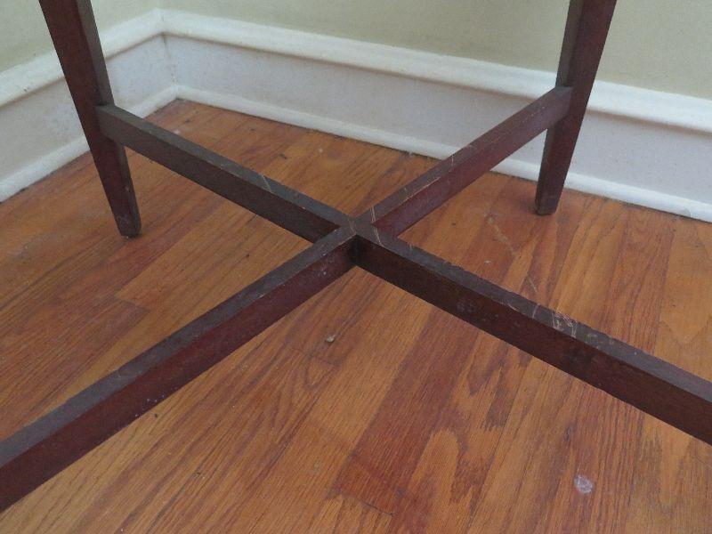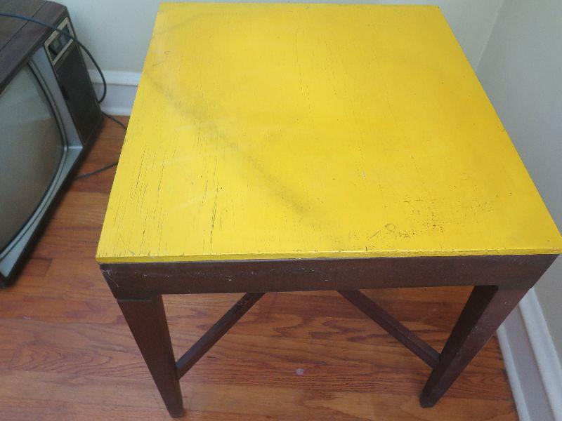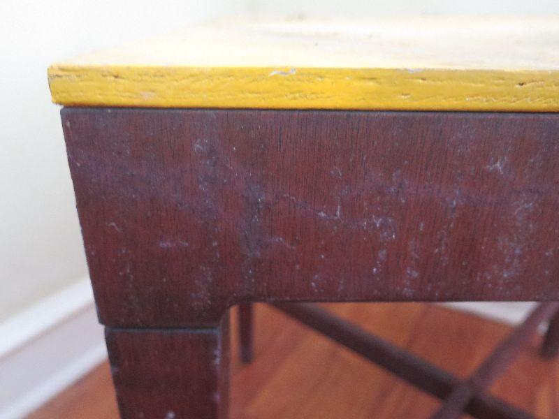 Vintage table with a piece of painted plywood for a top. Base is nice, just needs cleaning. 23x21x23. Please read Terms and Conditions before placing a bid. Pick up is Saturday, November 30 from 9am to 3 pm in Bridgeton, NJ. All sales are final. All sales are as is, where is. Please review all photos. Any props included in photos are not included in listing. All measurements are approximate.