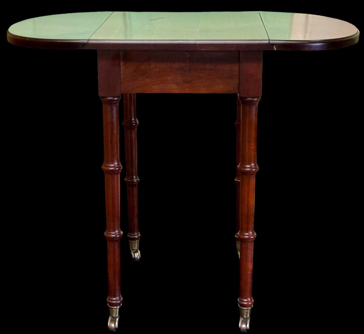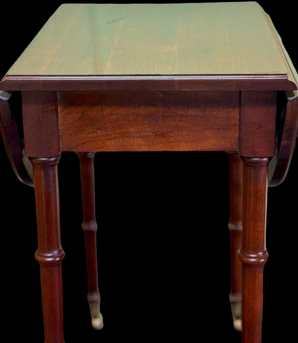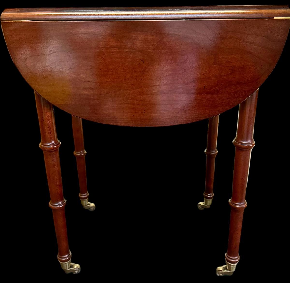 Quaint small wooden drop leaf accent table on wheels. Perfect for that small space.