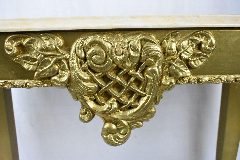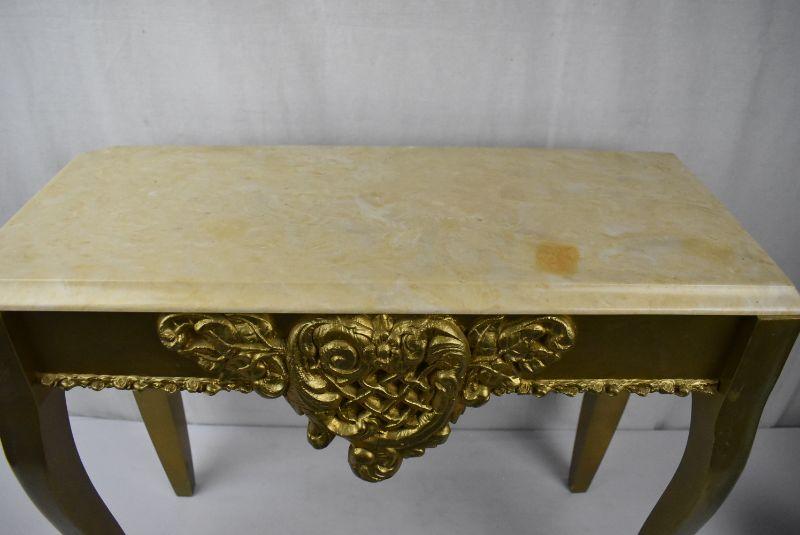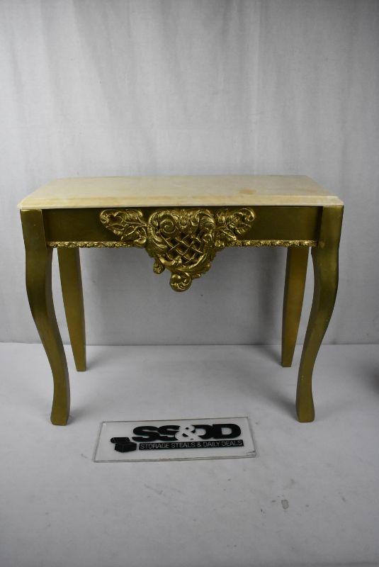 Side Table. Painted Gold, Top is faux marble & not attached. Chipped Corners