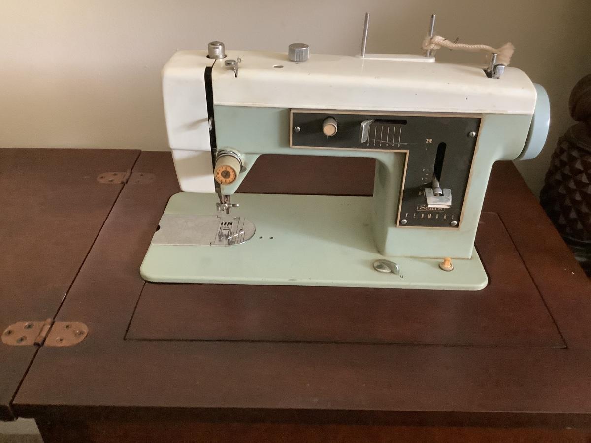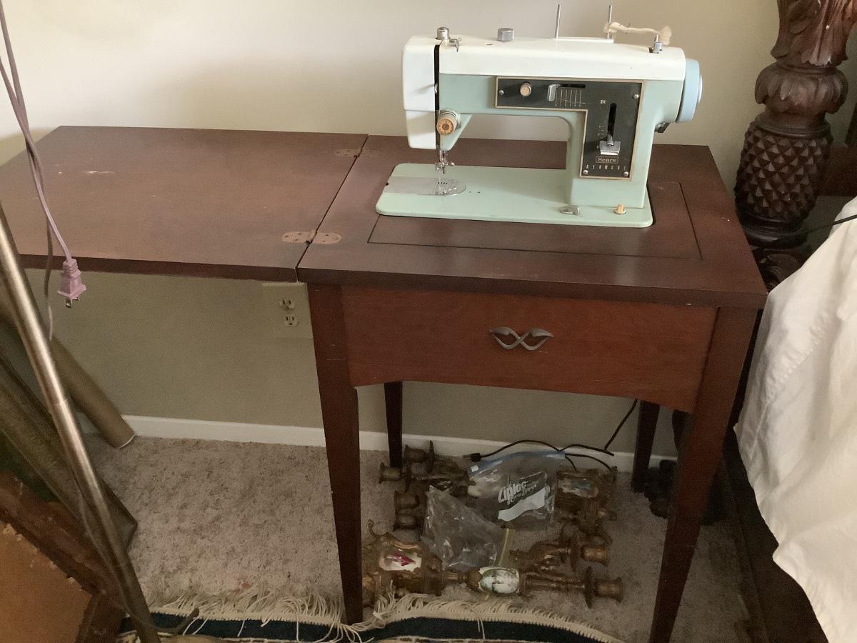 Side table that happens to have a sewing machine -Sears Kenmore in it 30"H 22" x 18" depth