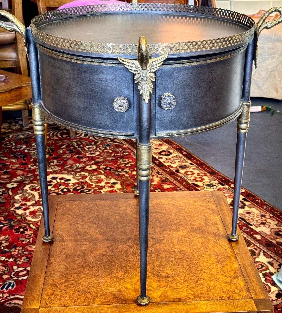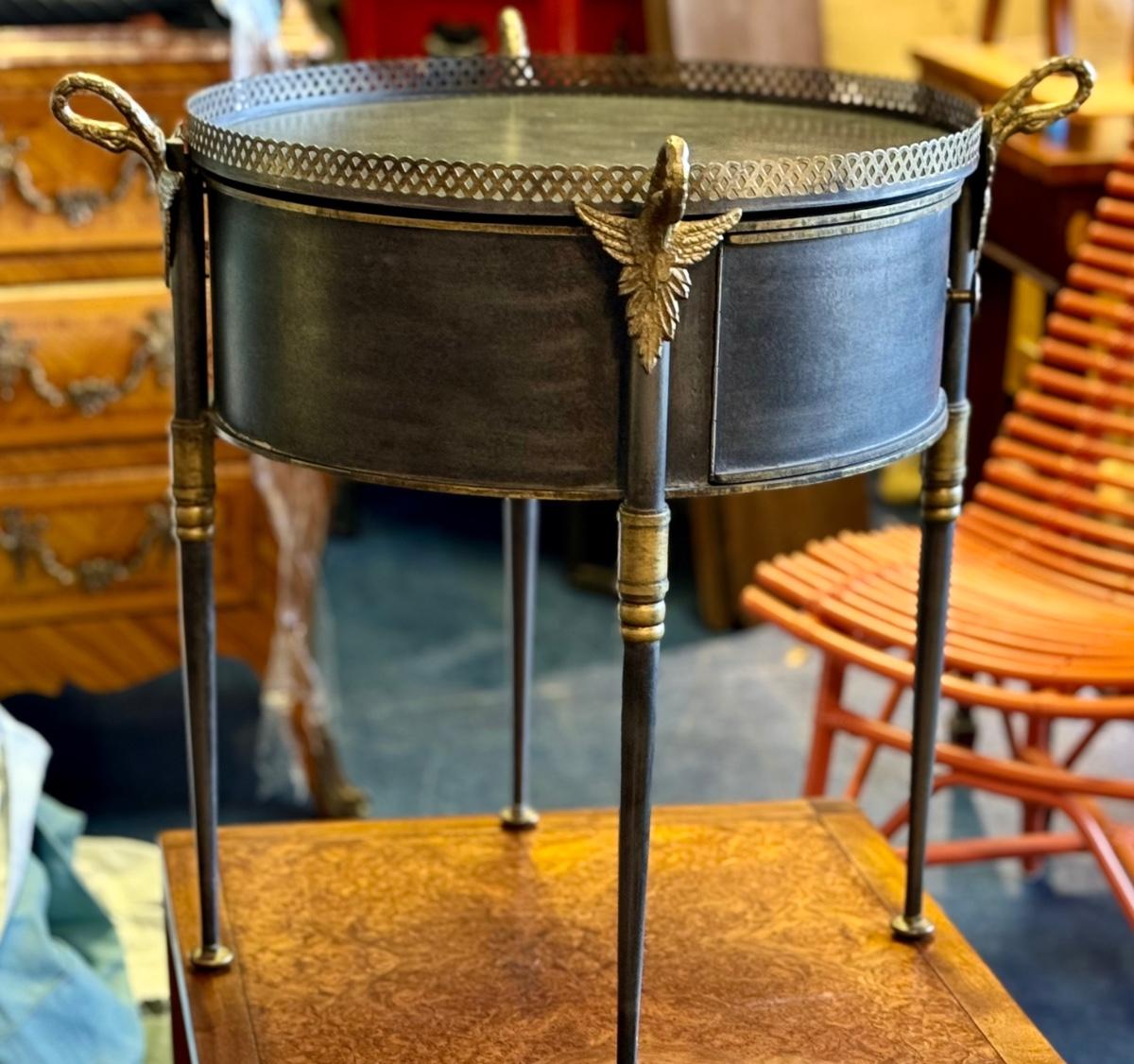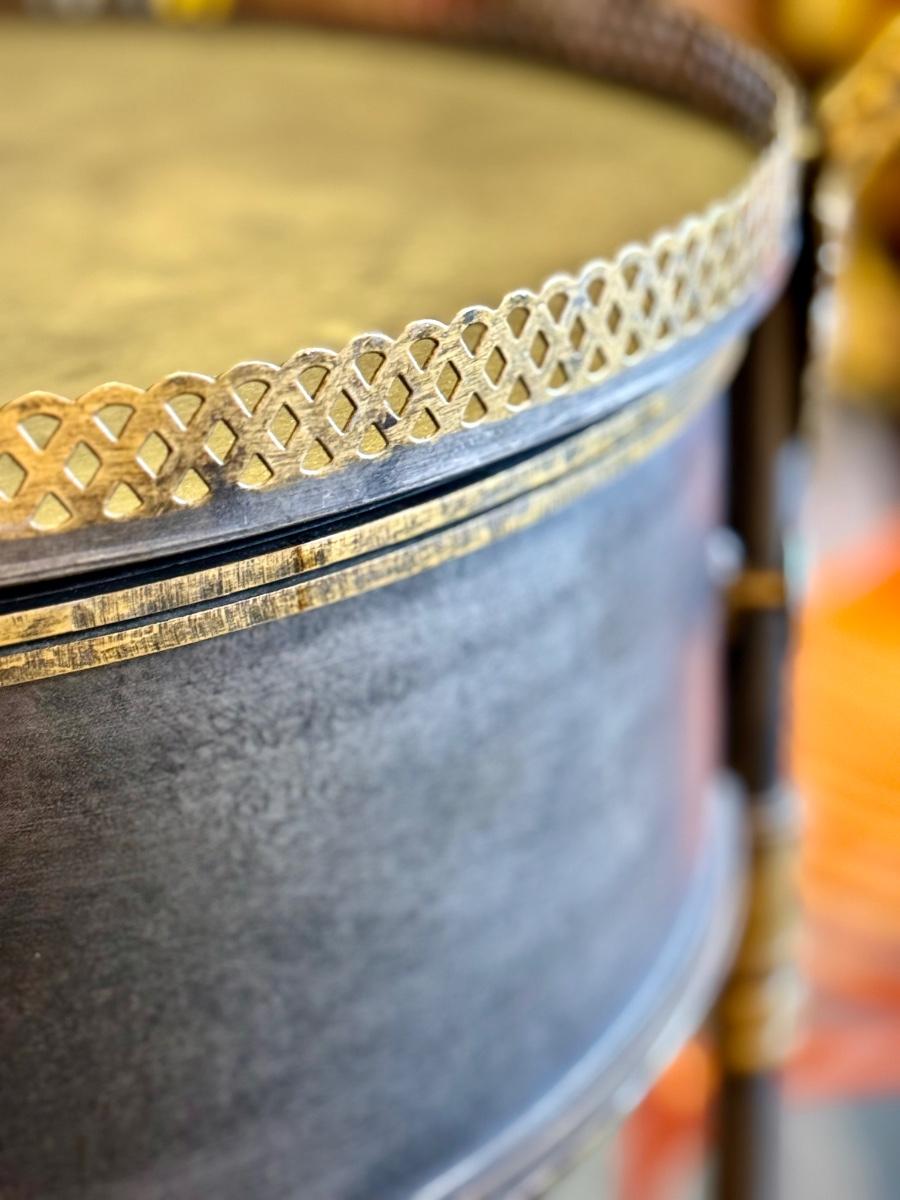 Vintage Trouvailles French Empire Metal Drum Tray Table