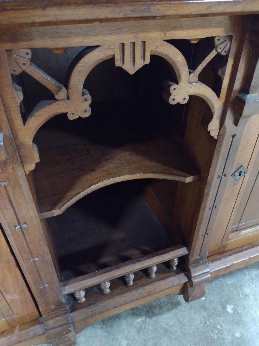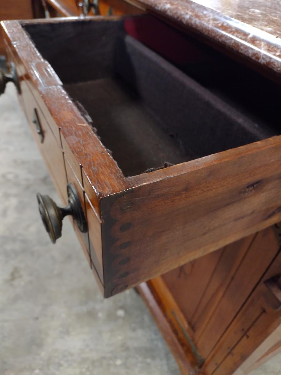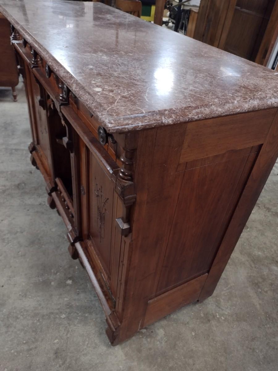 Antique Eastlake Design Walnut Finish Marble Top Sideboard