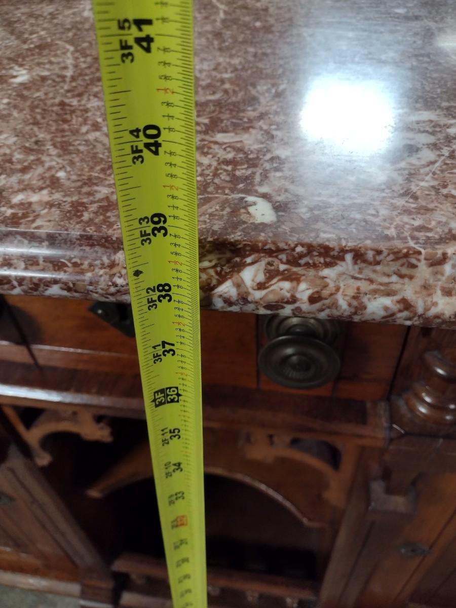 Antique Eastlake Design Walnut Finish Marble Top Sideboard- Approx 54" x 22" x 38" Tall