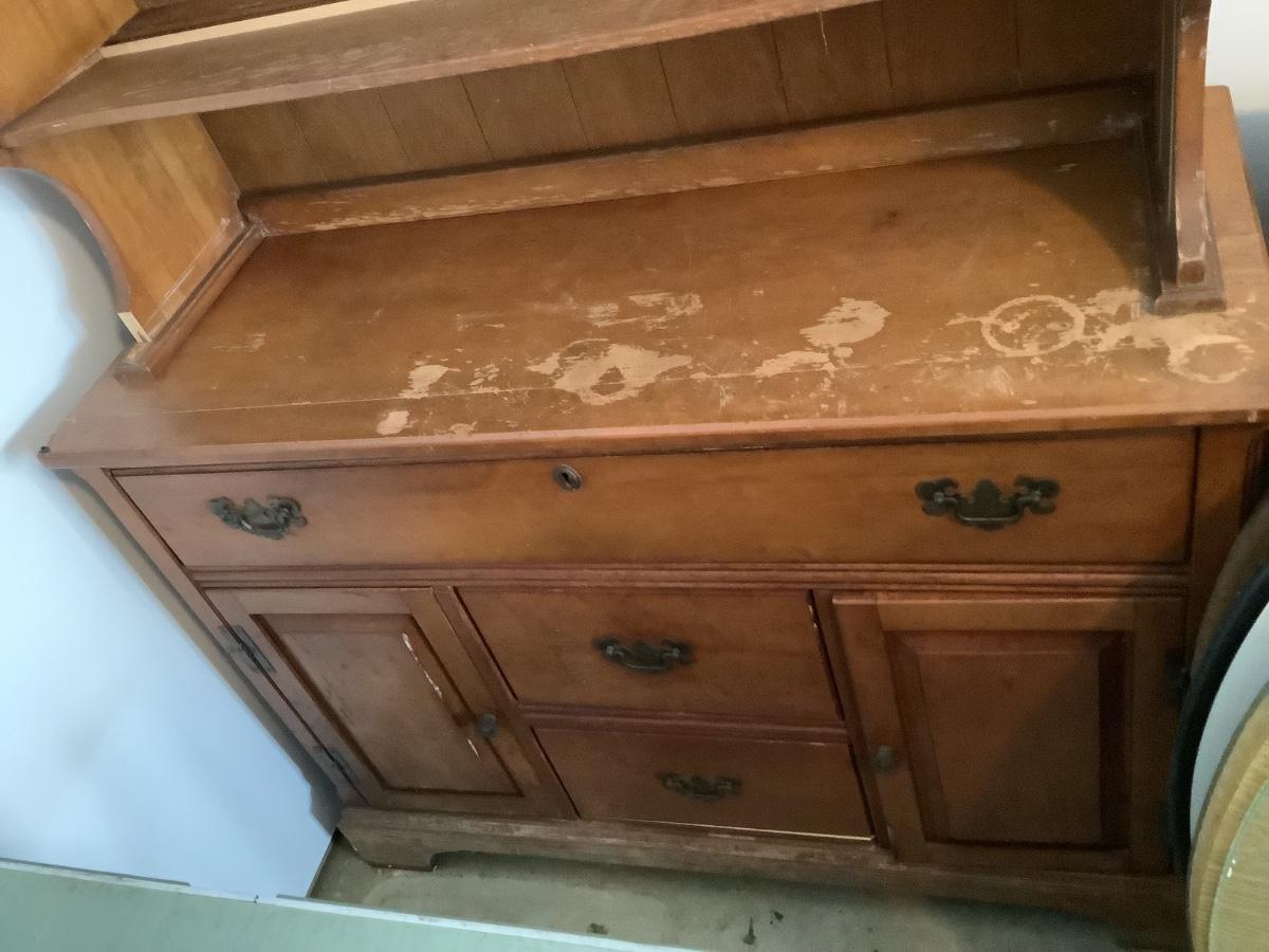 Sideboard, wooden dove tail 3 drawers, 2 doors, 33"H 45"L 18"depth -hutch top included separate piece-great project