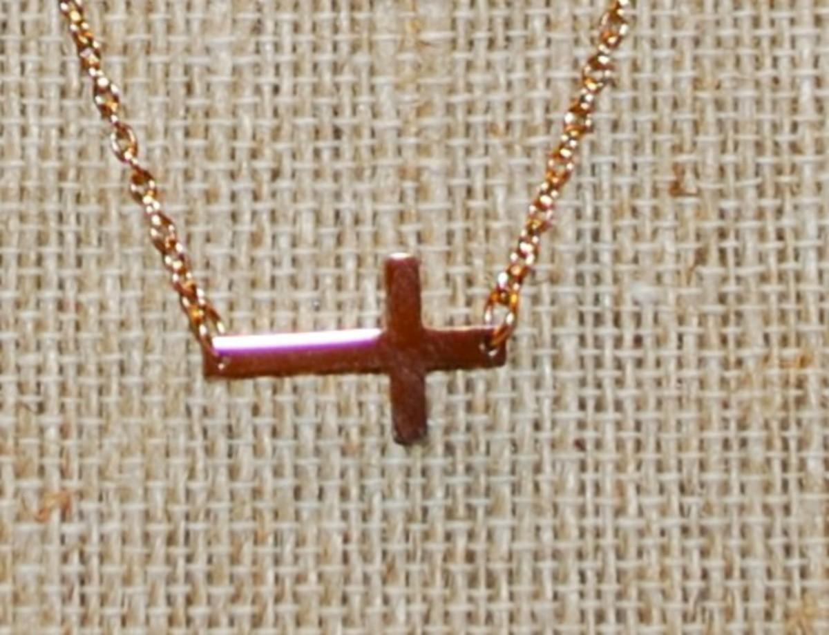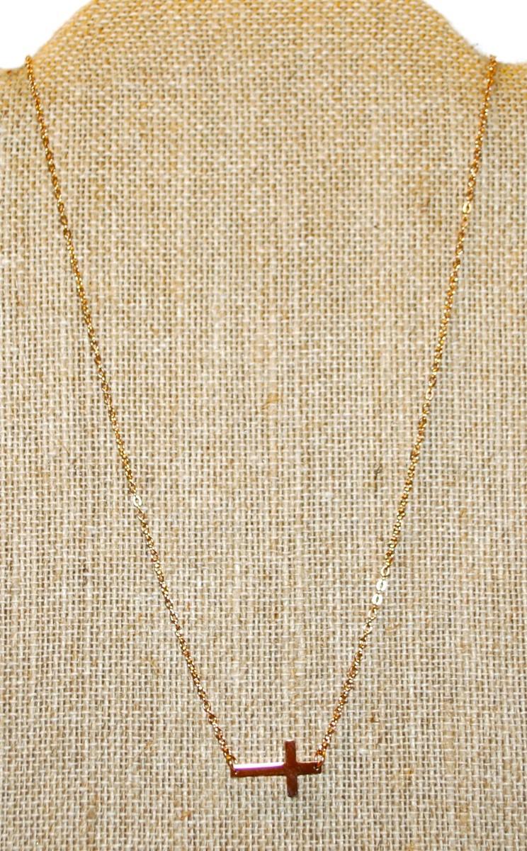 Sideways Gold Tone Cross (¾" x ½") on a Rose Gold Necklace Chain 16" L