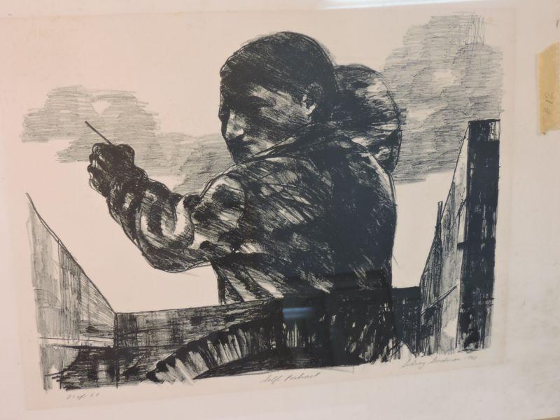 Philadelphia native Sidney Goodman early "Self Portrait" signed and numbered 27 of 50 lithograph, 1961. While held within a frame, it is not matted. There is tape on the backside of the paper. This is an excellent representation of the art he was creating in the 60's. Reframed this will make a wonderful addition to any collection. Print-coming Frame-coming **Please read Terms and Conditions before placing a bid. Pick up is Monday or Tuesday Oct. 28 or 29th from 12p to 4p in Mantua, New Jersey. Also we will do by appointment on November 1st or 2nd.Shipping is available at buyer's expense. All sales are final. All sales are as is, where is. Please review all photos. Any props included in photos are not included in listing. All measurements are approximate.