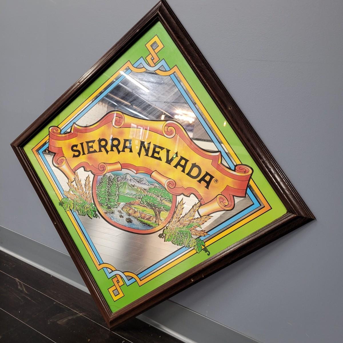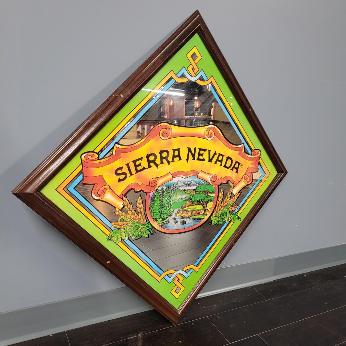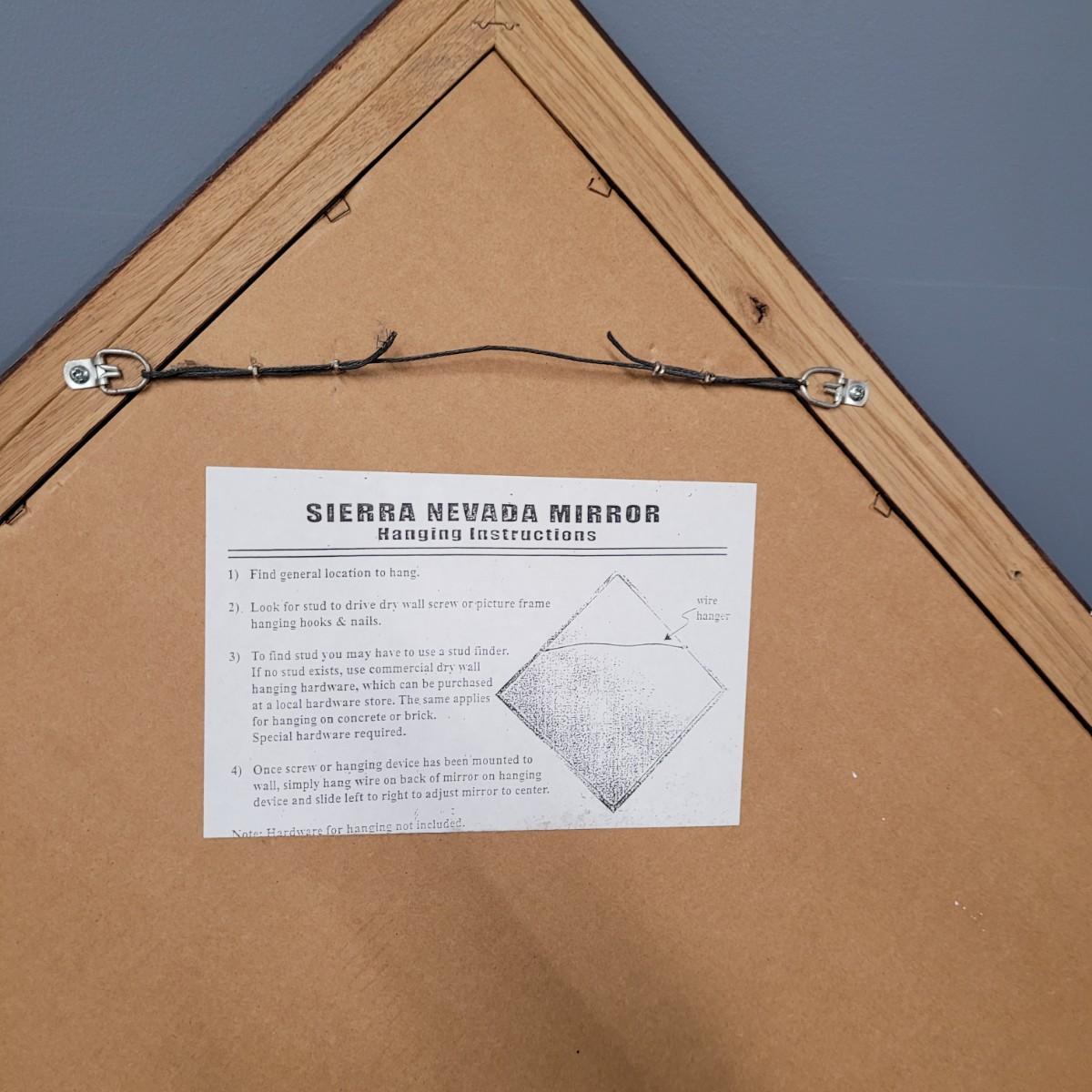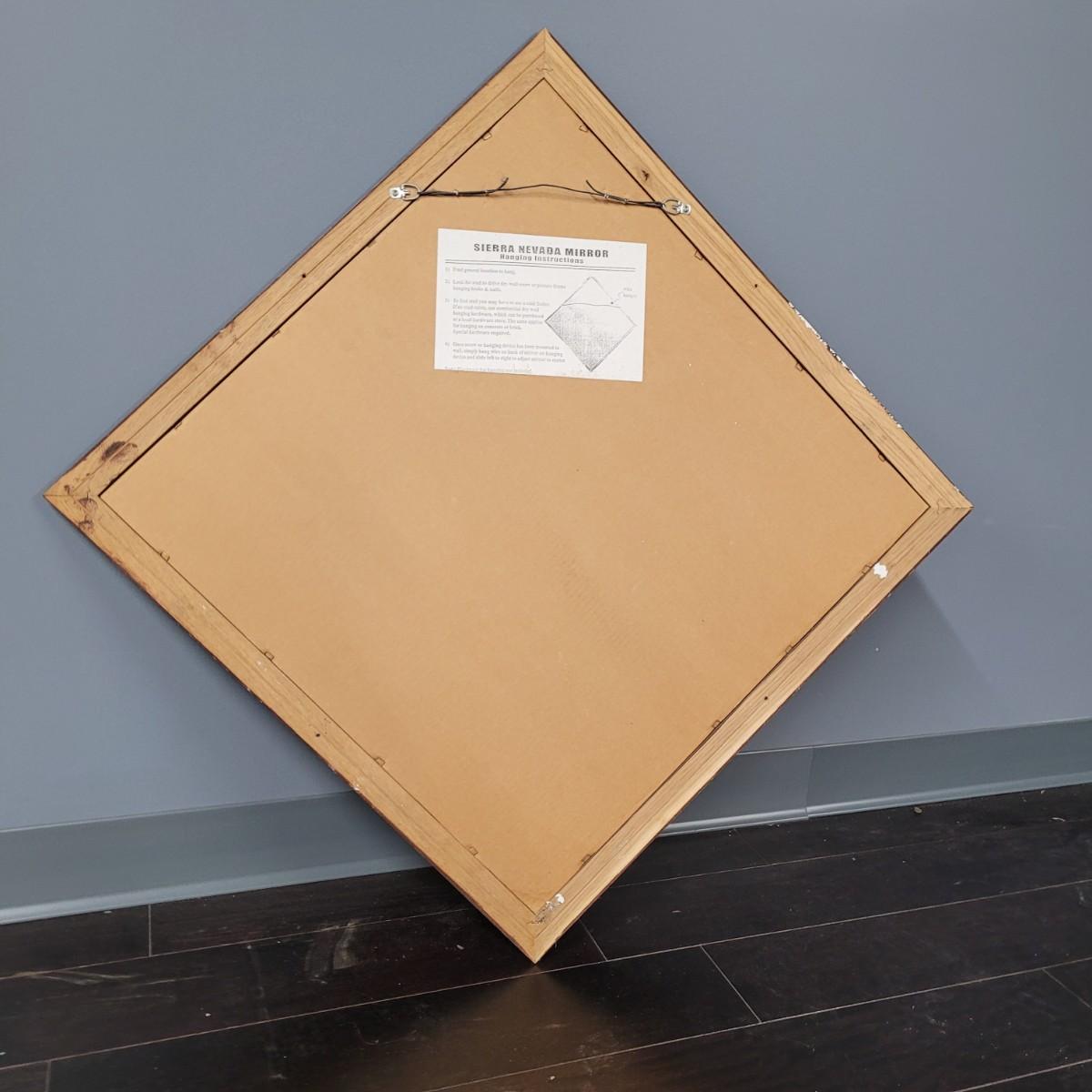 Sierra Nevada diamond hanging wooden framed mirror. Normal wear and tear throughout frame and staining in bottom corner (see pictures). Measures approximately 27" sq. Shipping available. Shipping Art can be costly please call UPS store at 828-252-6930 for quote.