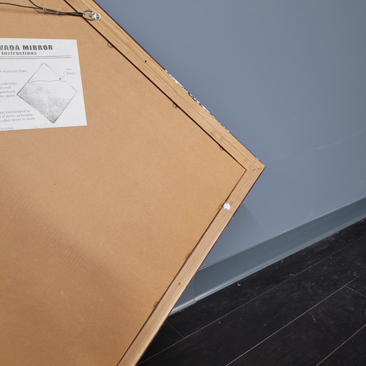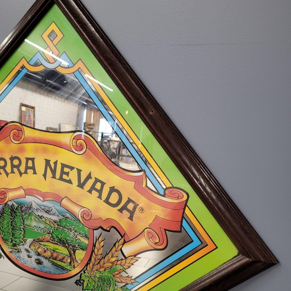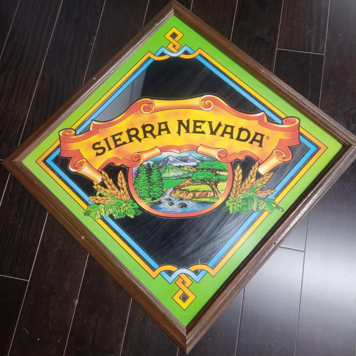 Sierra Nevada diamond hanging wooden framed mirror. Normal wear and tear throughout frame and staining in bottom corner (see pictures). Measures approximately 27" sq. Shipping available. Shipping Art can be costly please call UPS store at 828-252-6930 for quote.