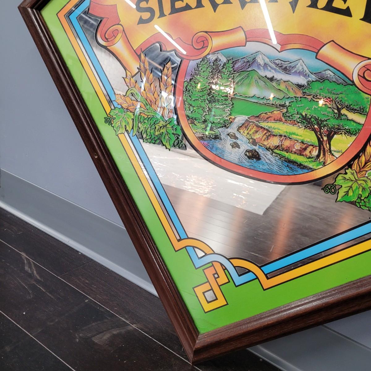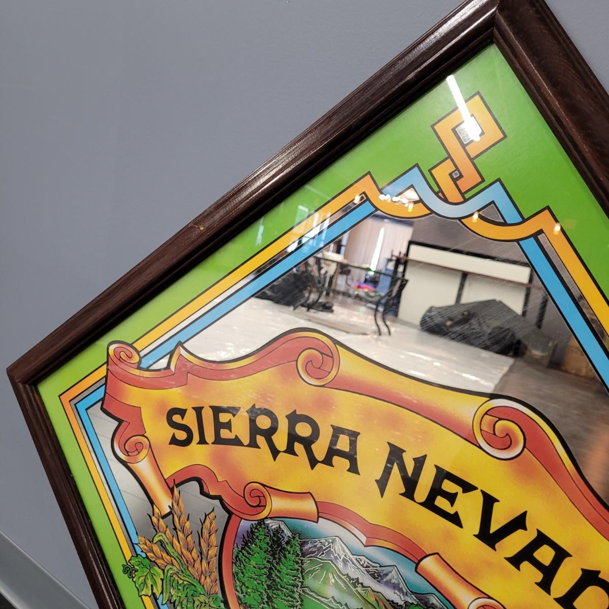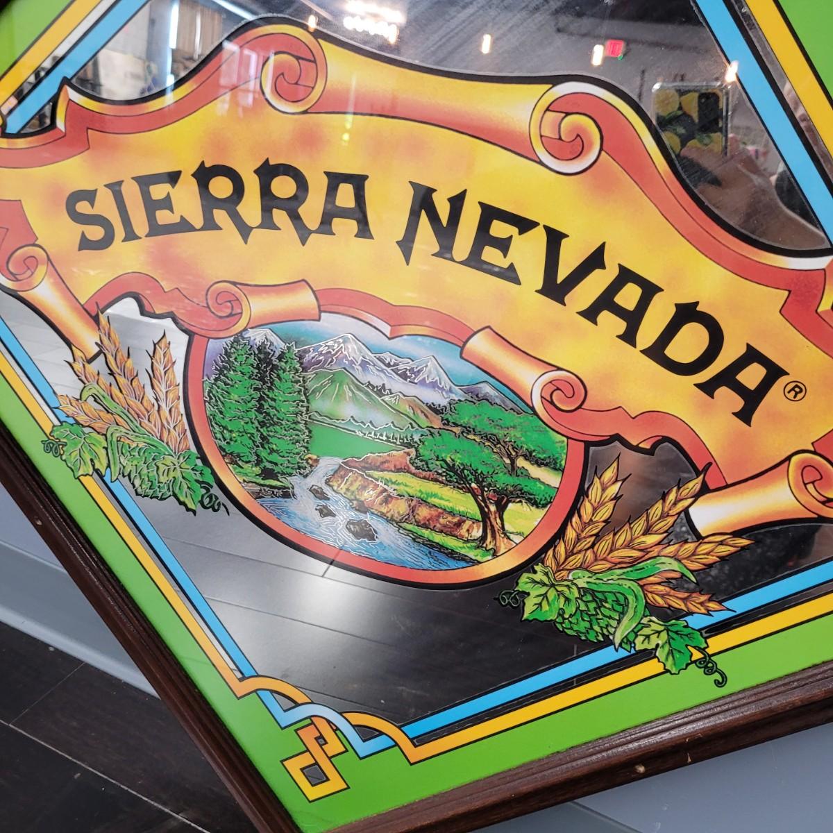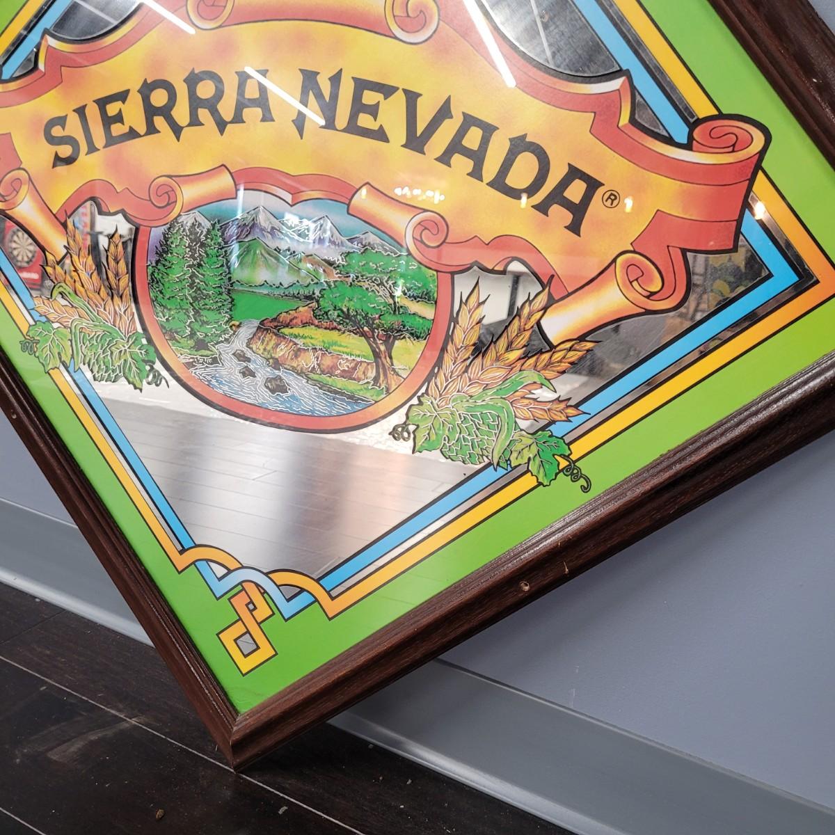 Sierra Nevada diamond hanging wooden framed mirror. Normal wear and tear throughout frame and staining in bottom corner (see pictures). Measures approximately 27" sq. Shipping available. Shipping Art can be costly please call UPS store at 828-252-6930 for quote.