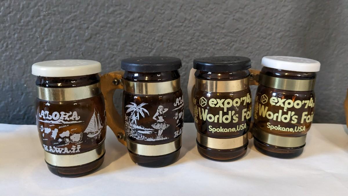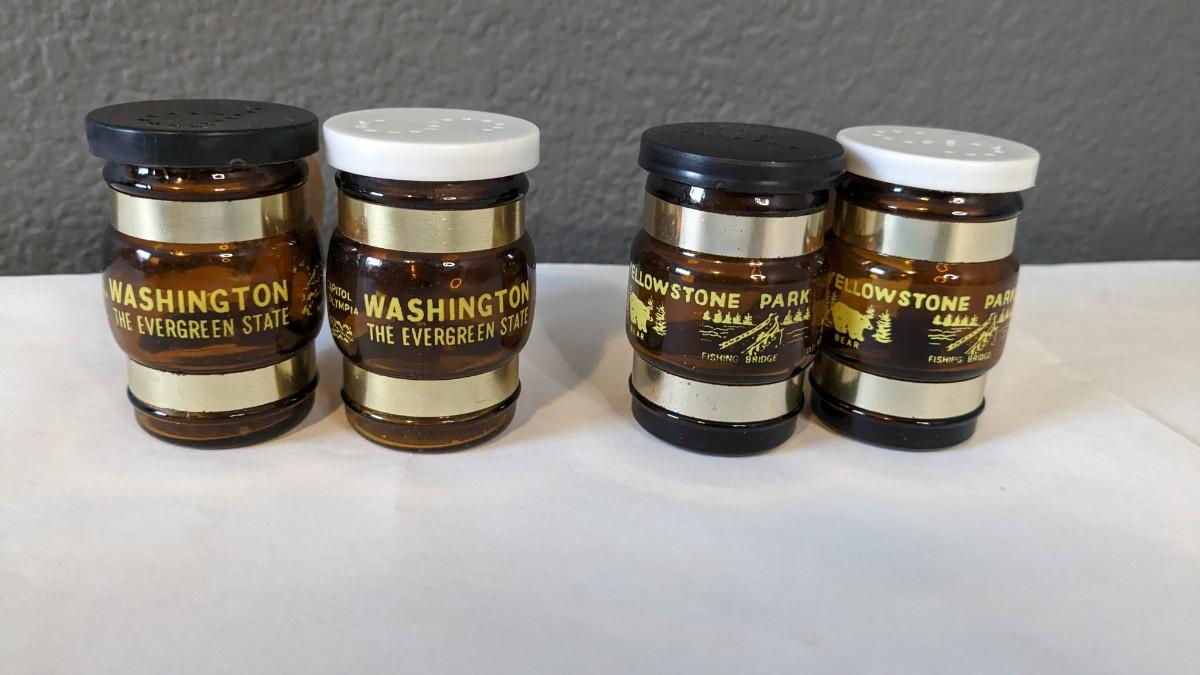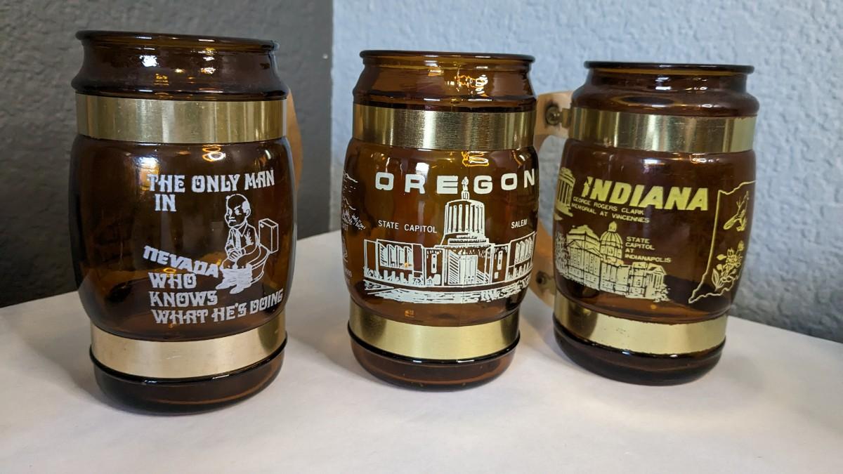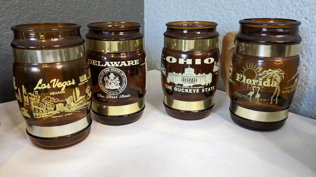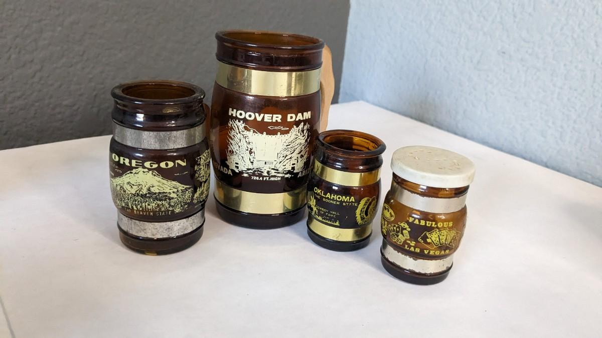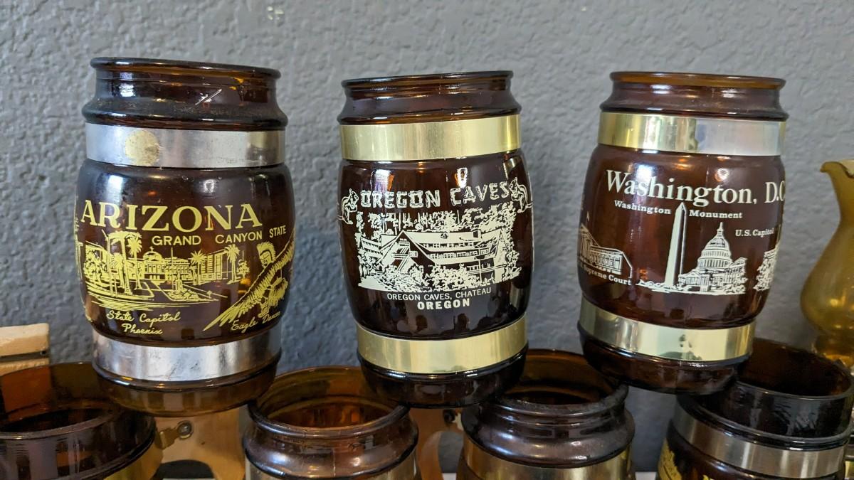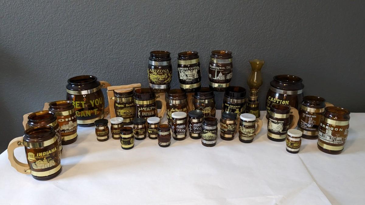 a LARGE assortment of varied state Siesta Ware style mugs, shakers, a bank for Virginia Beach, an oil lamp (note chipped shade), and shot glasses! Some great stuff in here with a ton of varied craft/upcycle/reselling potential! No shipping