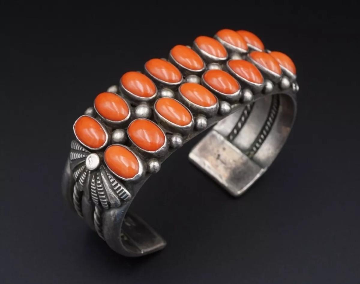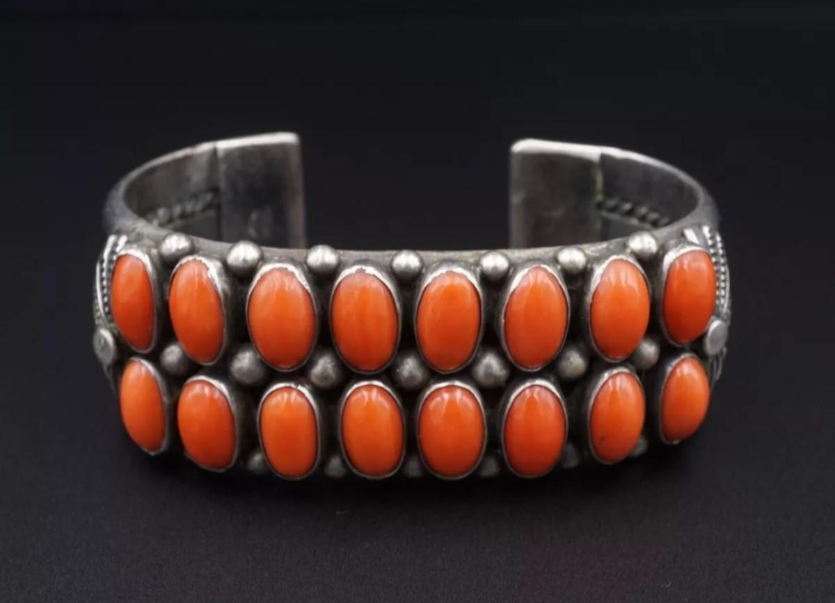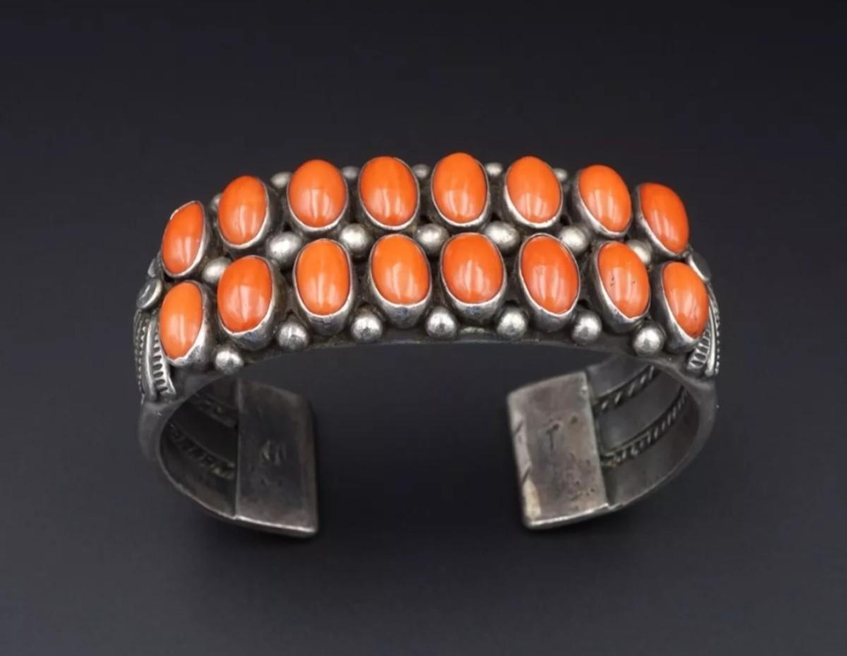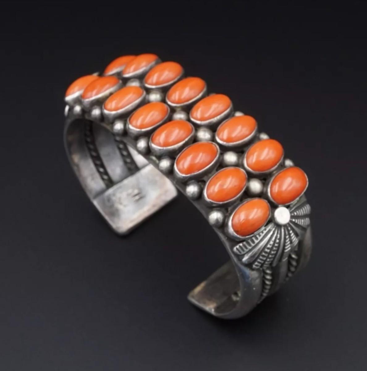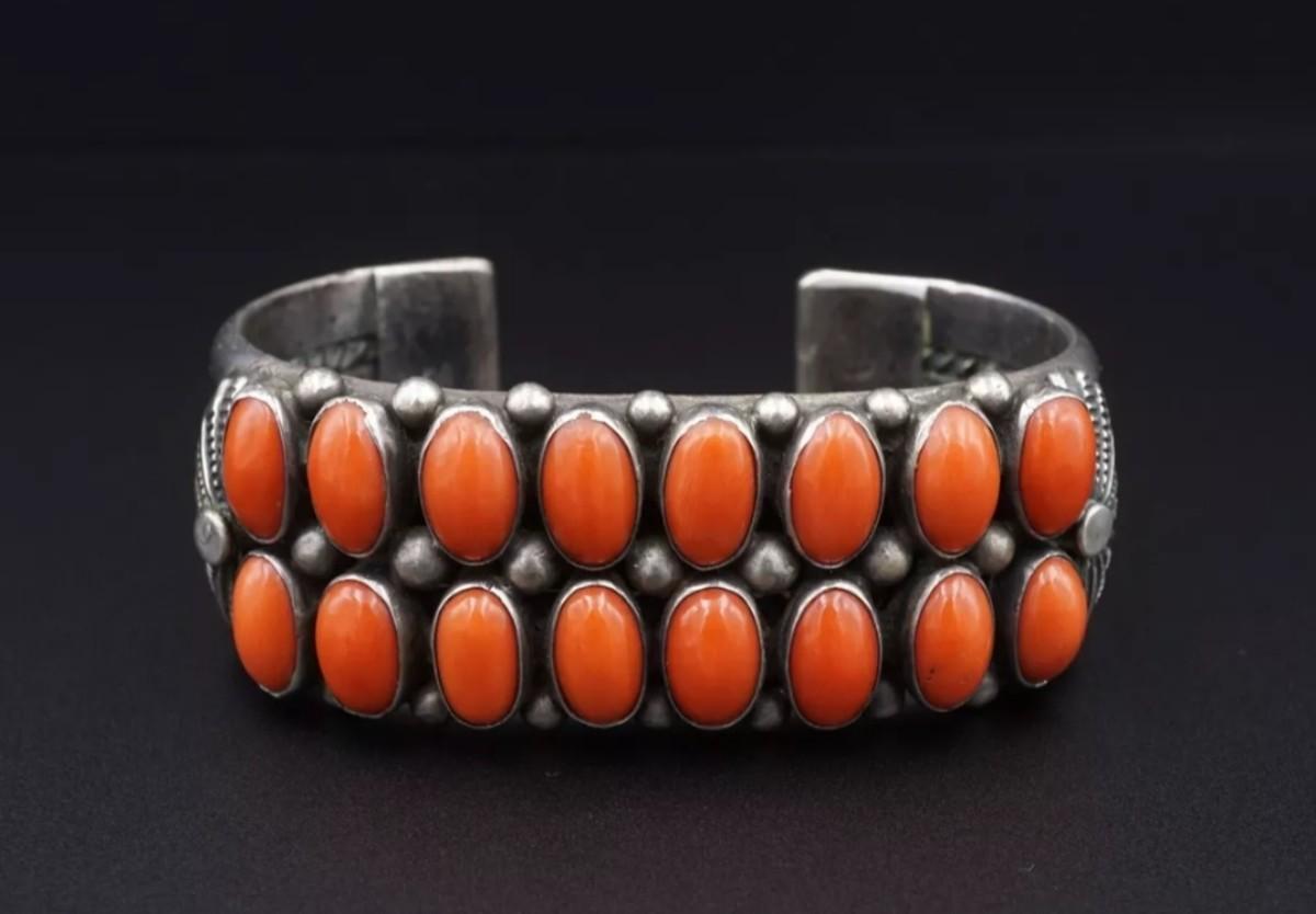 Sighned vintage sterling silver red coral bracelet