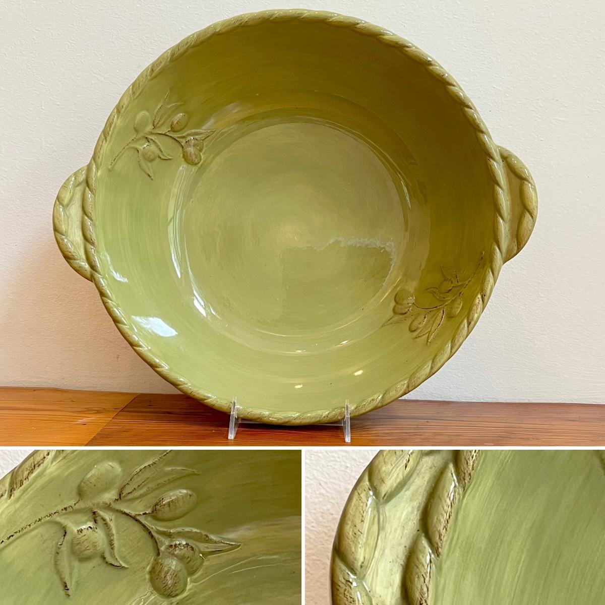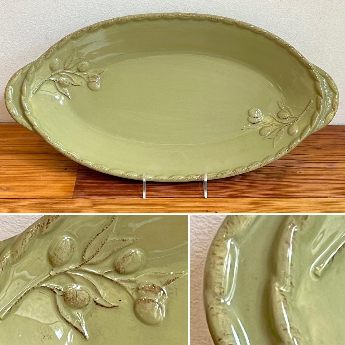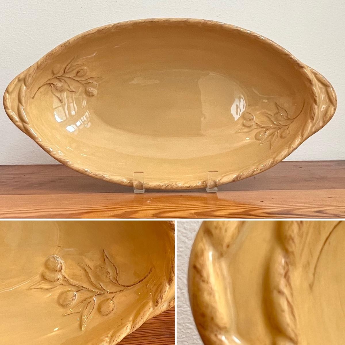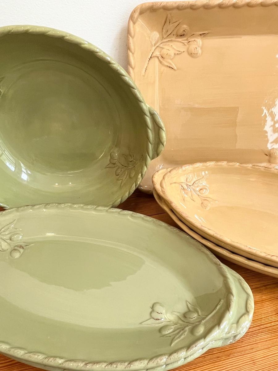 Includes = (1) Gold Platter 18.5” W ~ (2) Gold Oval Bowls 15” W ~ (1) Green Round Bowl 14” R ~ (2) Oval Platters 18” W