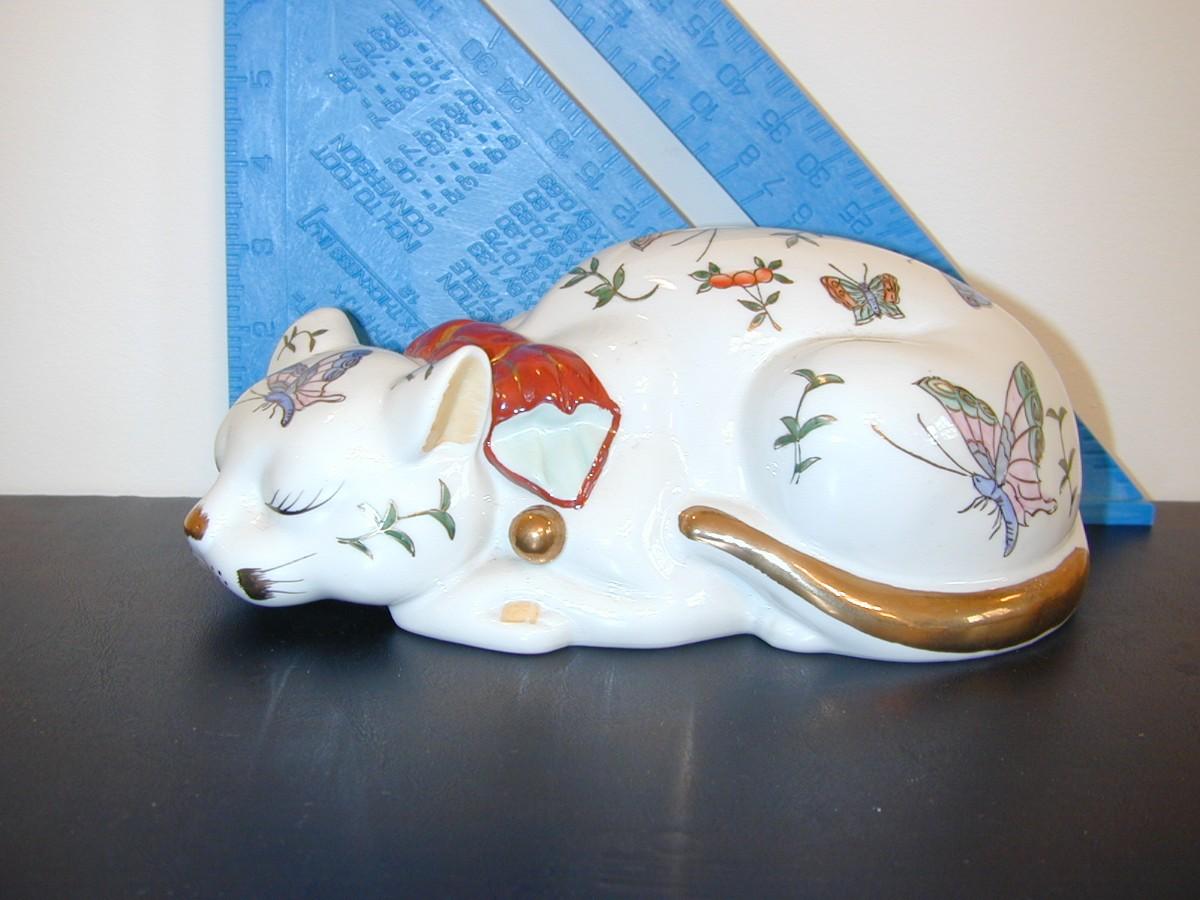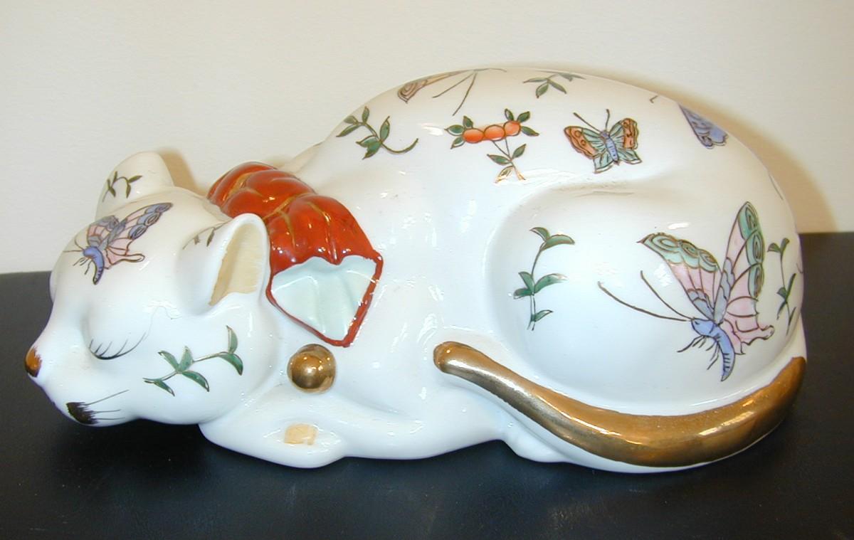 Signe Asian Porcelain Sleeping Cat Figurine Lot 435