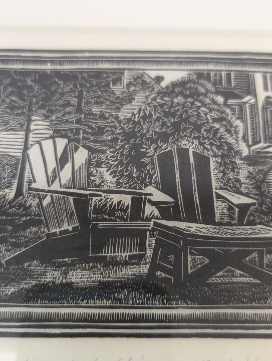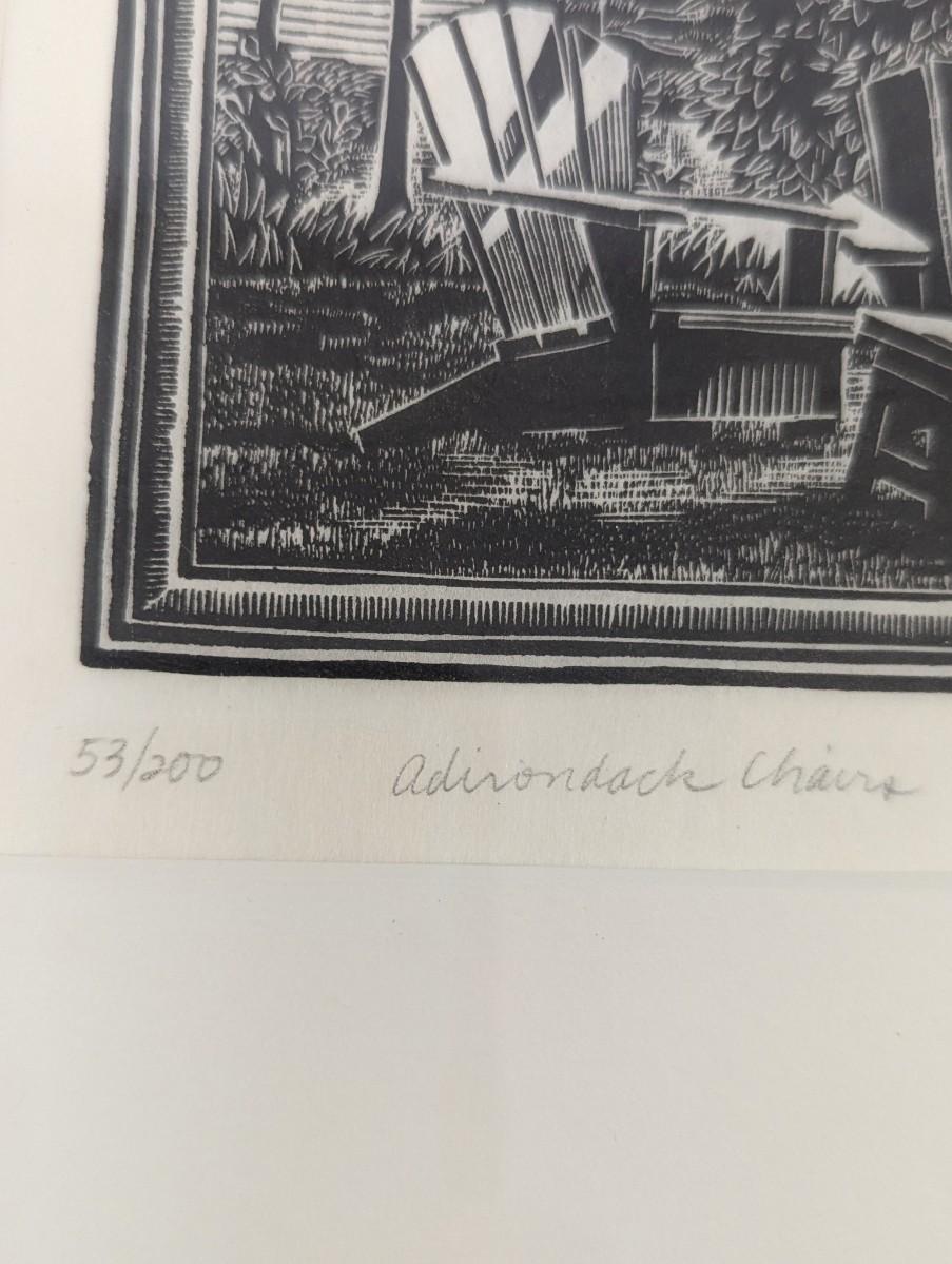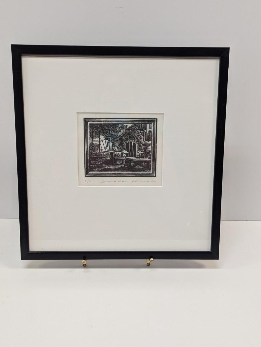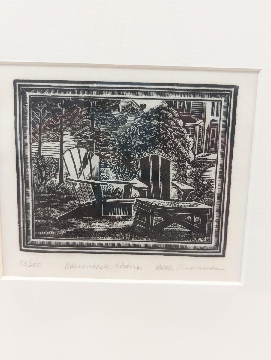 Signed & Numbered "Adirondack Chairs" By Beth Krommes Art Approx 13 12/" x 14 1/4"