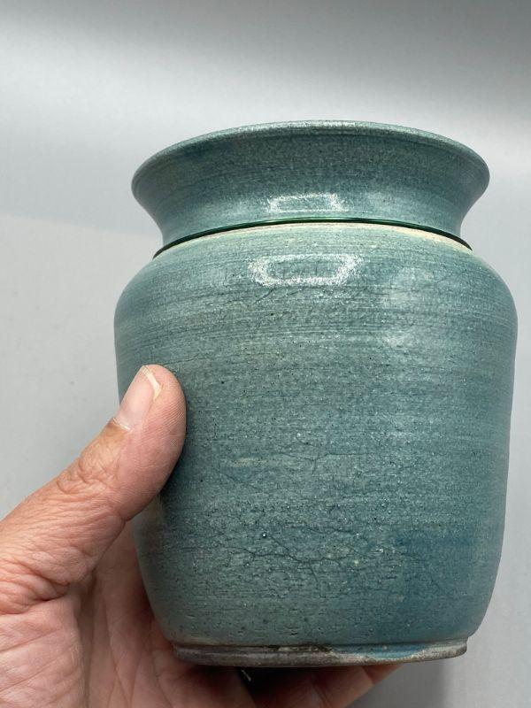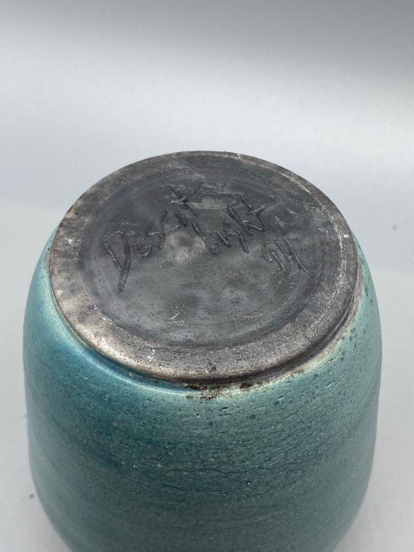 Signed 1994 Desert Light Small Teal Finish Pottery Vase Urn Planter
