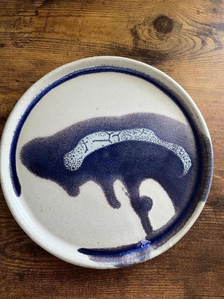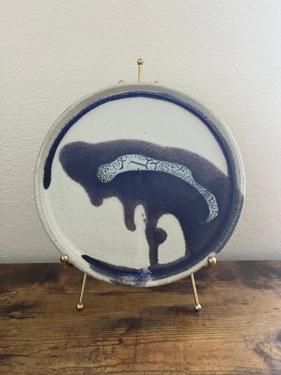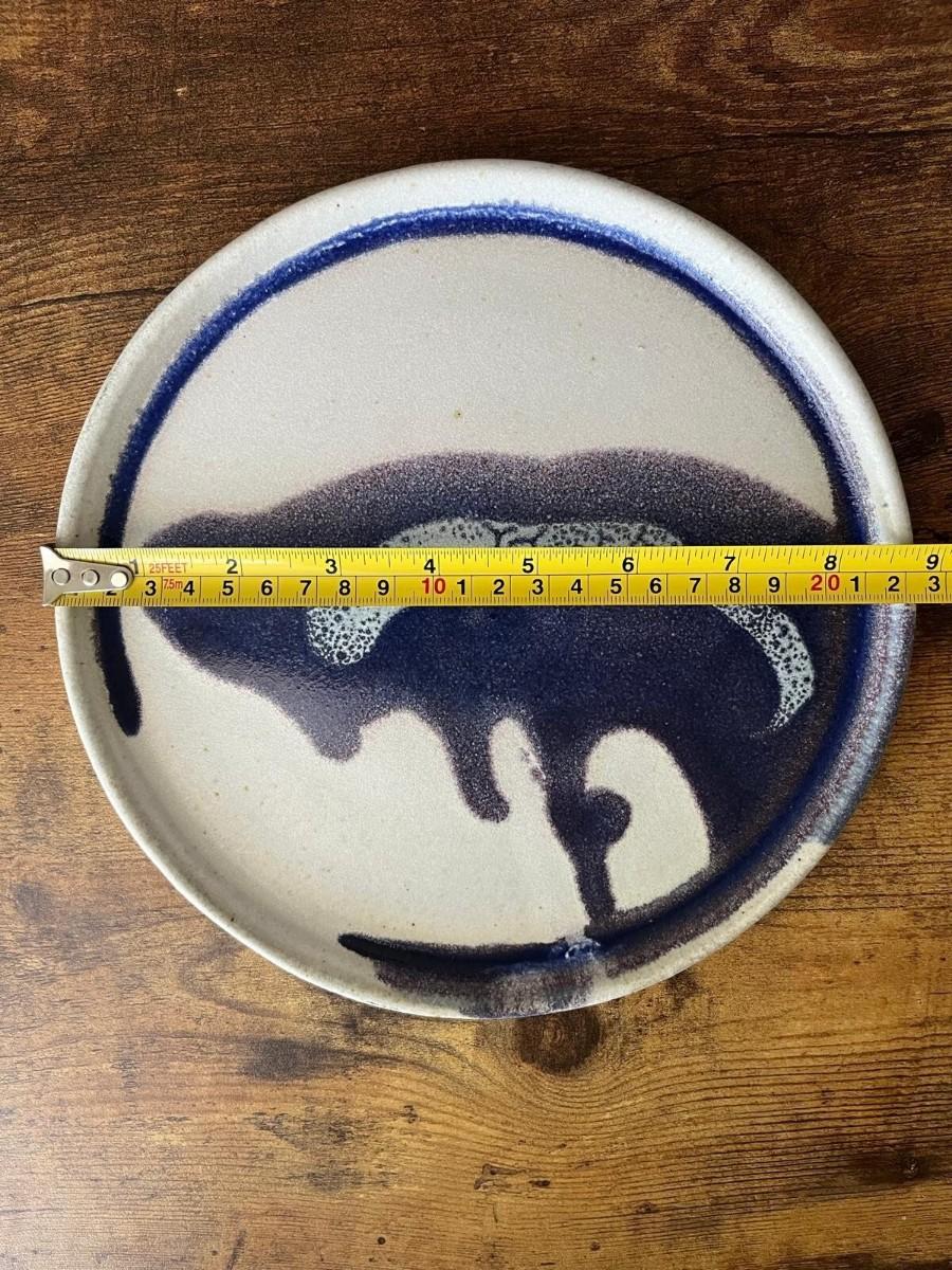 Studio Art pottery plate tray grey blue abstract design artisan signed