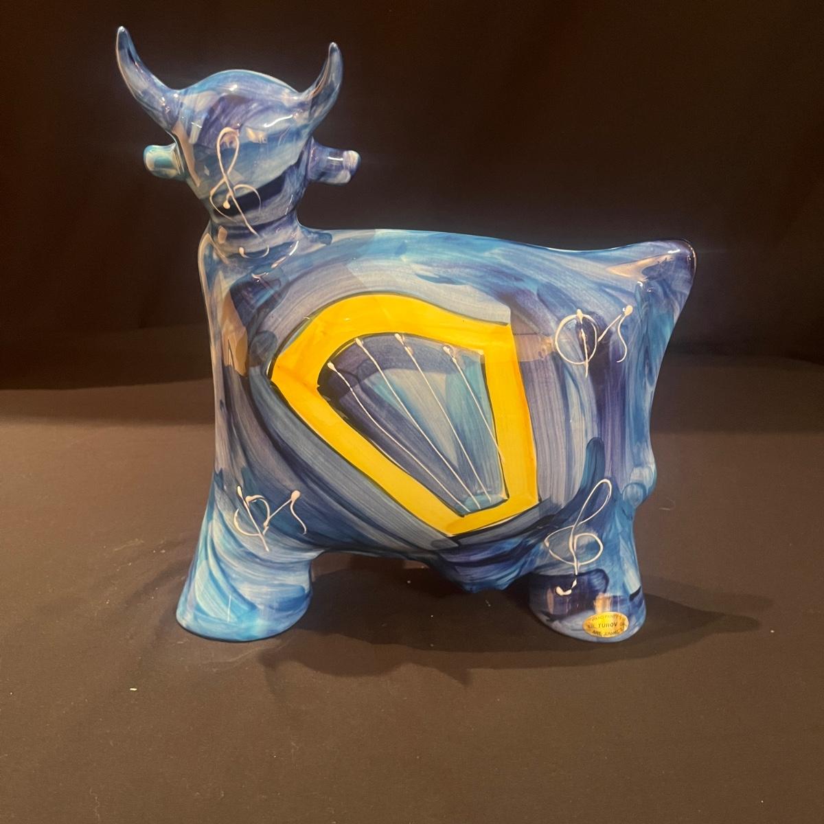 Lot includes a colorful and signed Anatoly Turov ceramic bull that measures 10” x 4.25” x 11.5”.