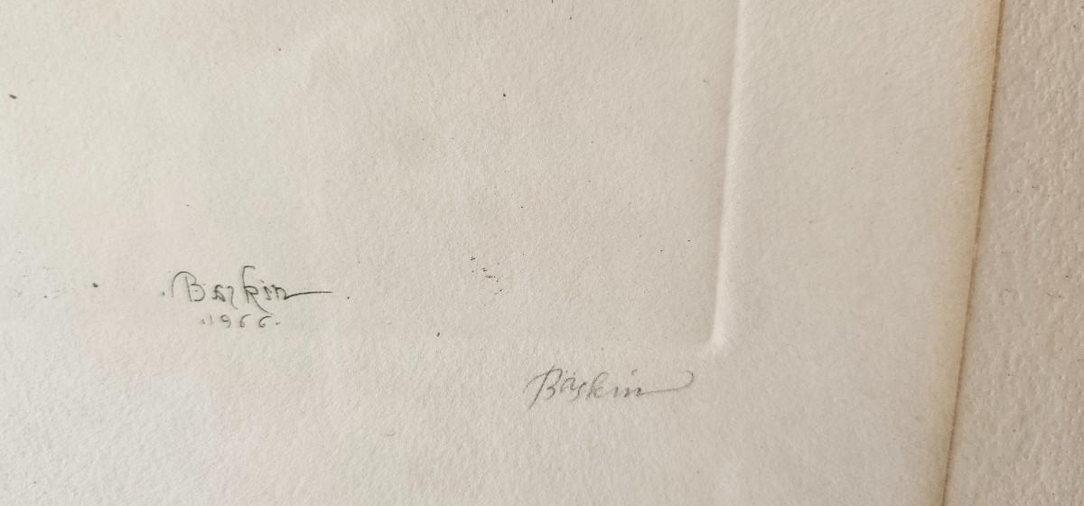 Signed and numbered print 43/100 "For Muriel" Artist: Baskin dated 1966