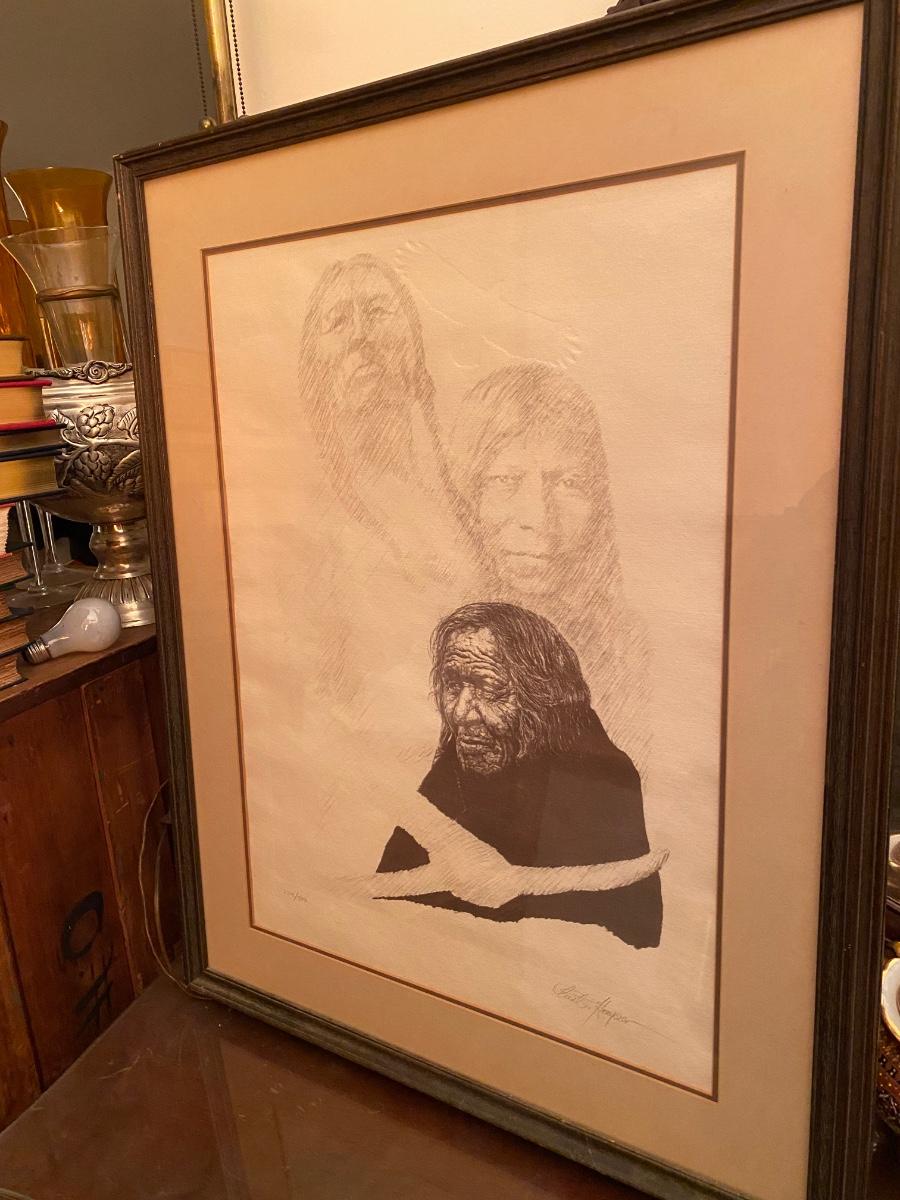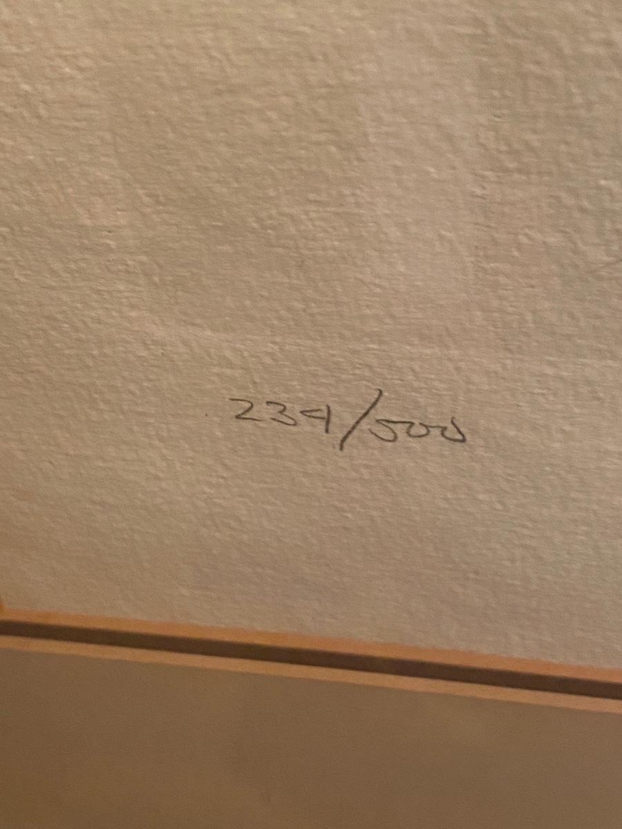 Signed, numbered and framed charcola drawing with embossed detal artwork. Approx measures 33x26