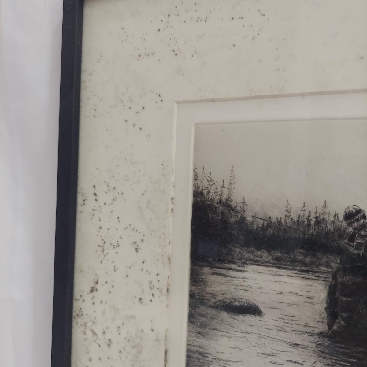 Signed and numbered etching “Paying Customer” by Gordon Allen. Frame appears to be wood and measures 18” x 15"H. Matte needs replaced. The art is protected under glass. Please see photos for details. Shipping available. Shipping can be costly. We suggest contacting our preferred local shipping provider, Postage Express, with dimensions and getting an estimate before bidding: 828-255-9250 or shipping@postageexpressnc.com