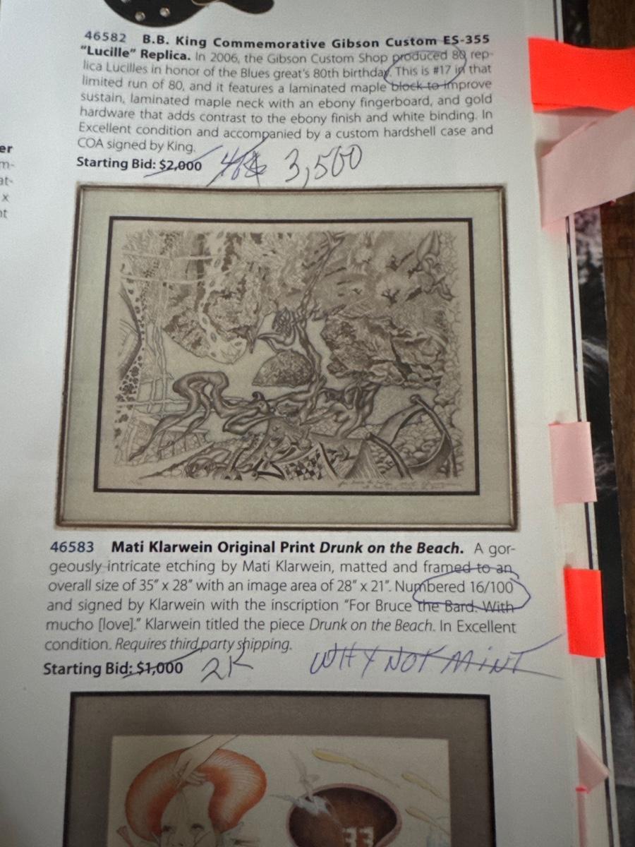 Etching by Mati Klarwein Signed “For Bruce the Bard. With mucho [love].”
