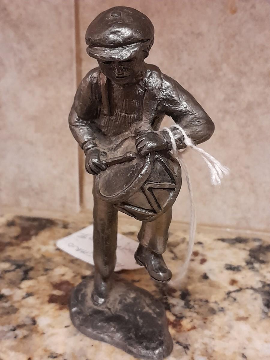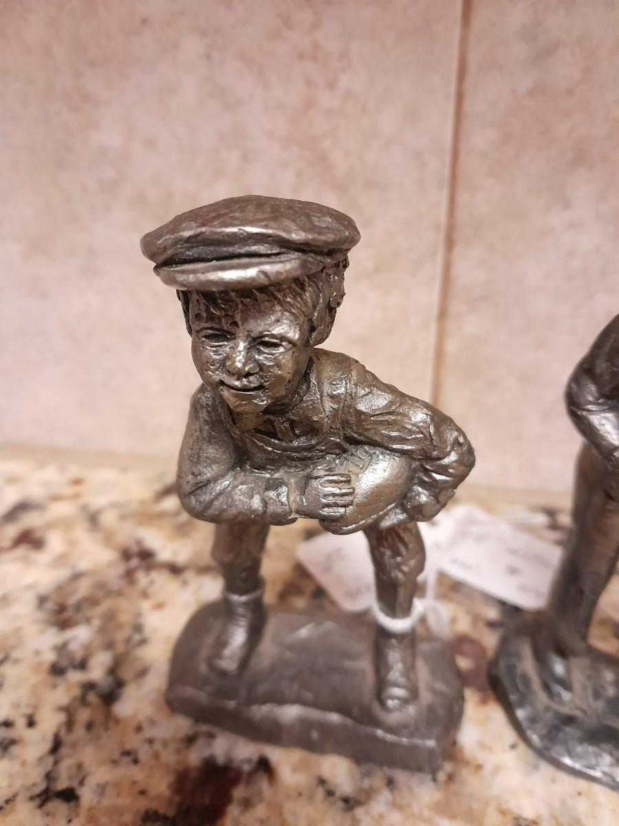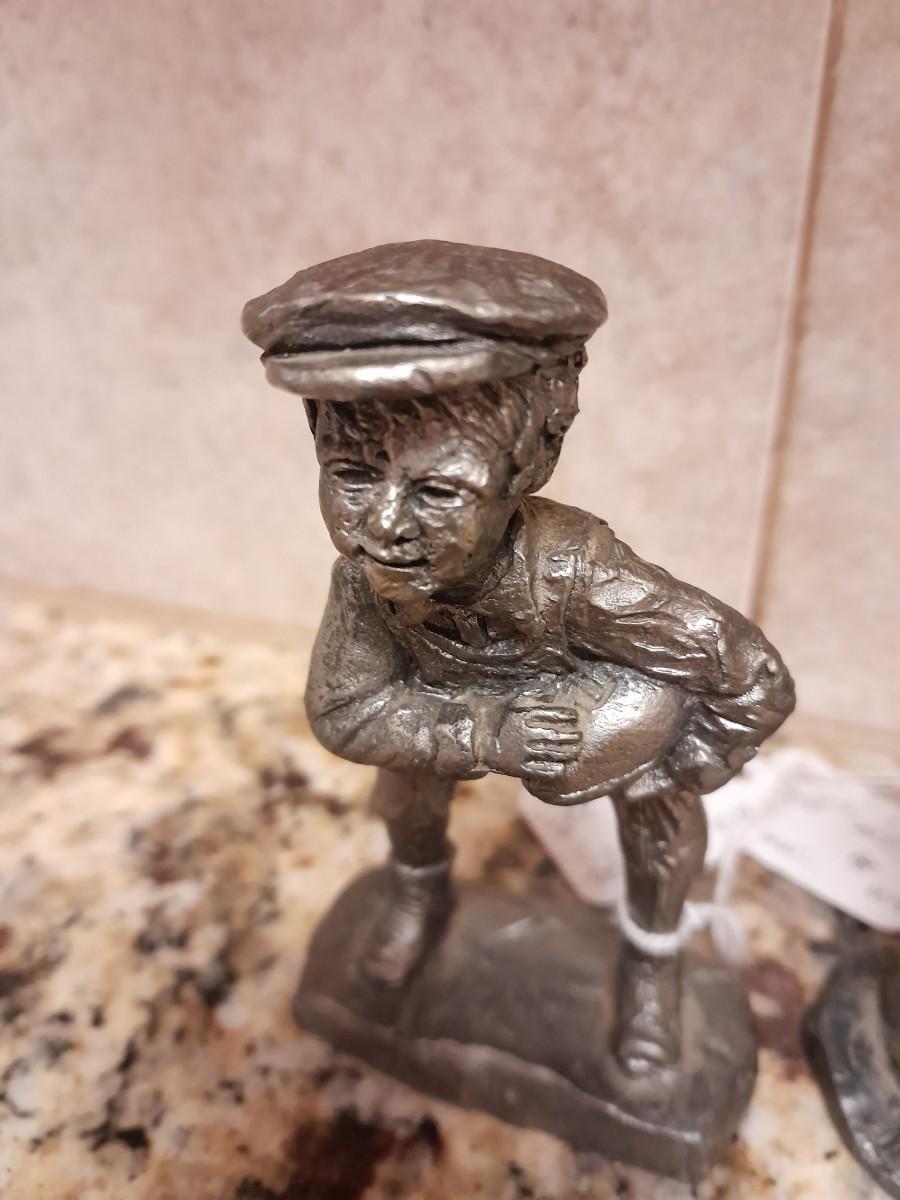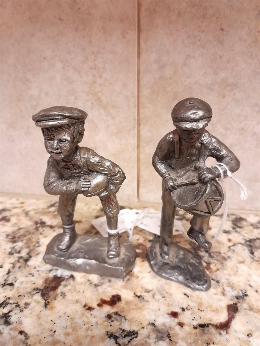 SIGNED AND NUMBERED RICKER PEWTER COLLECTABLES BOY WITH FOOTBALL AND BOY WITH DRUM
