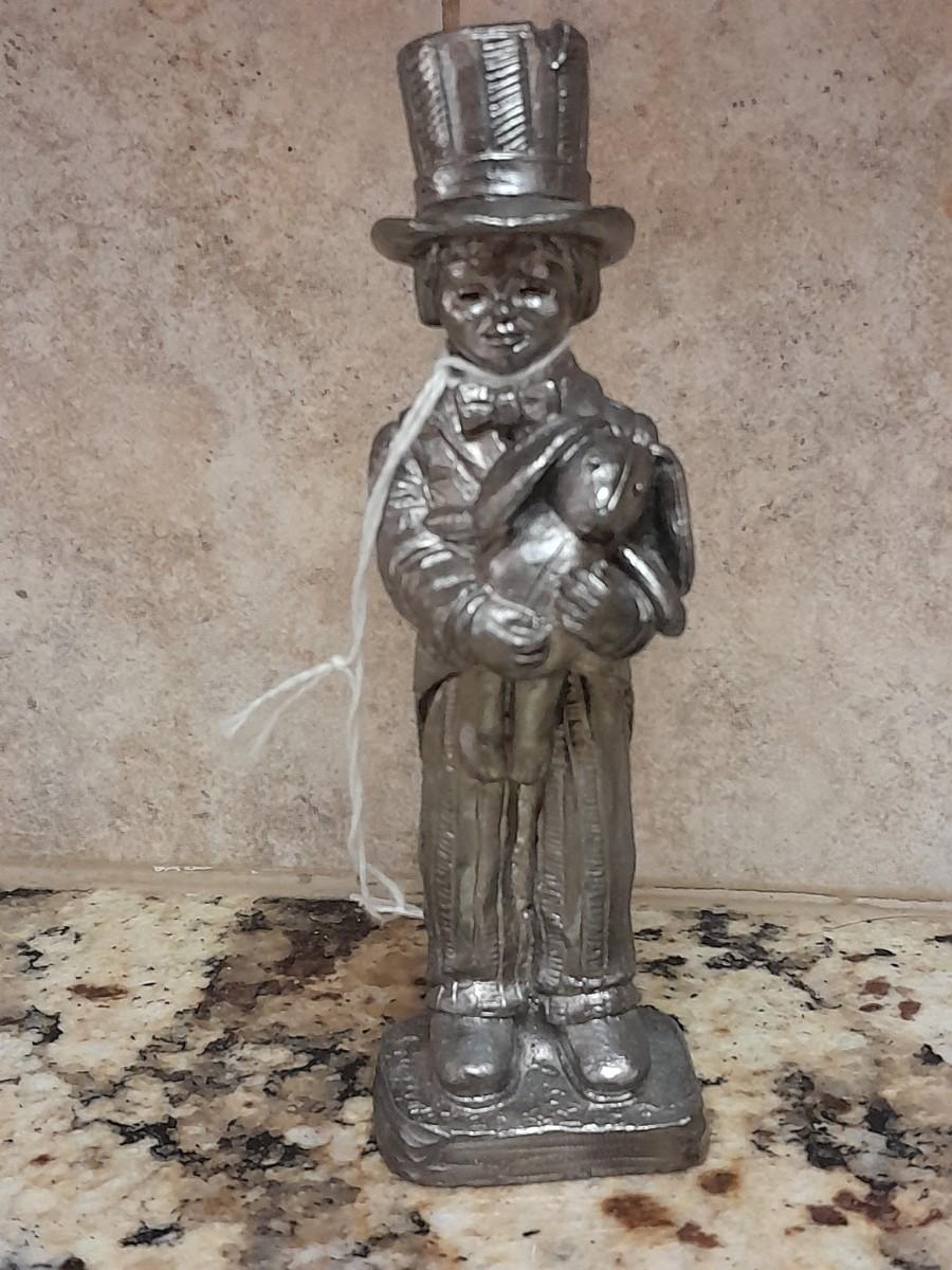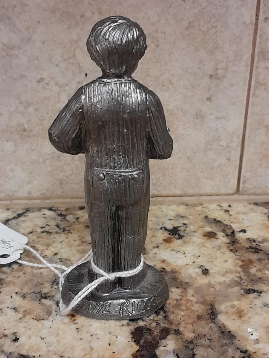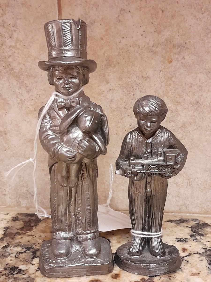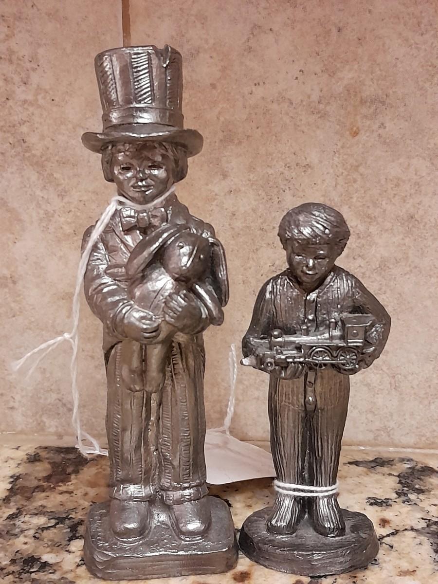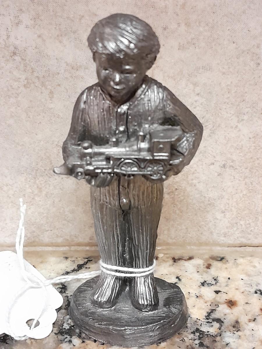 SIGNED AND NUMBERED RICKER PEWTER COLLECTABLES BOY WITH RABBIT AND BOY WITH TRAIN