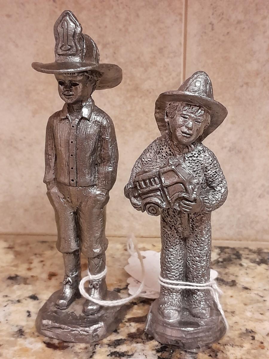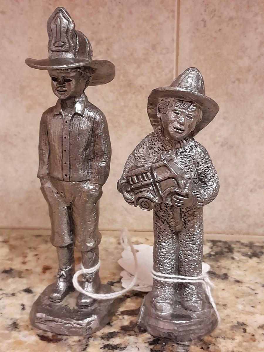 SIGNED AND NUMBERED RICKER PEWTER COLLECTABLES TWO FIREMEN BOYS