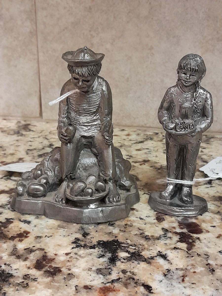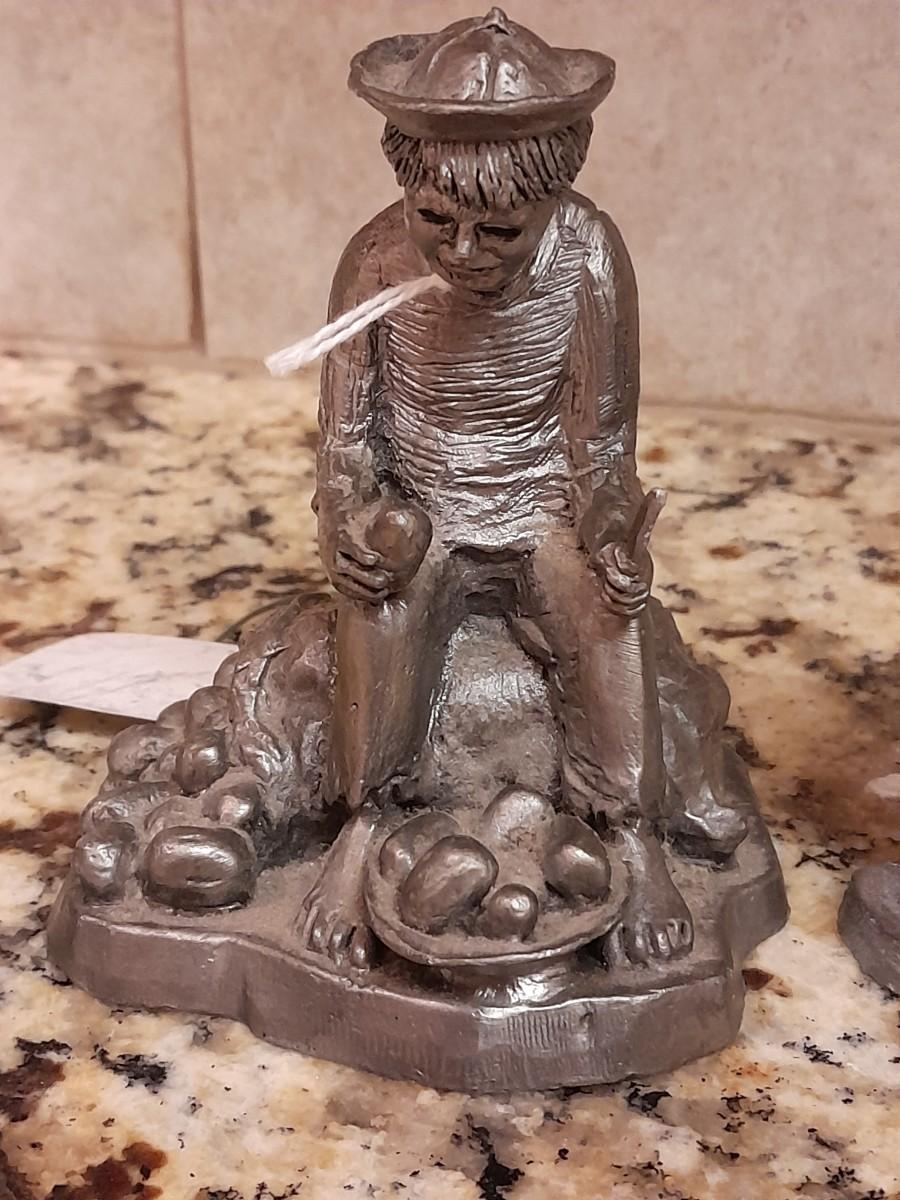 SIGNED AND NUMBERED RICKER PEWTER COLLECTABLES BOY WITH BOWL PEELING POTATOES AND FOR SANTA