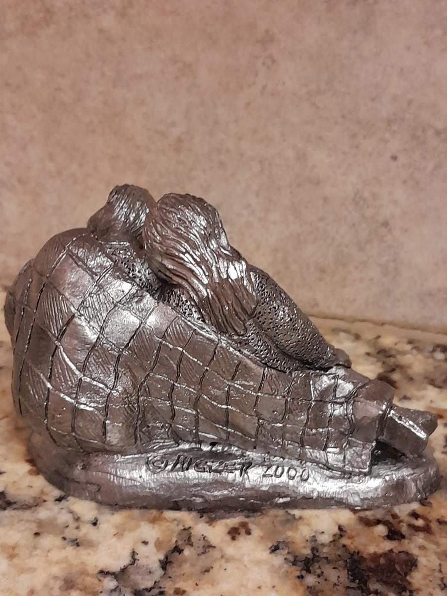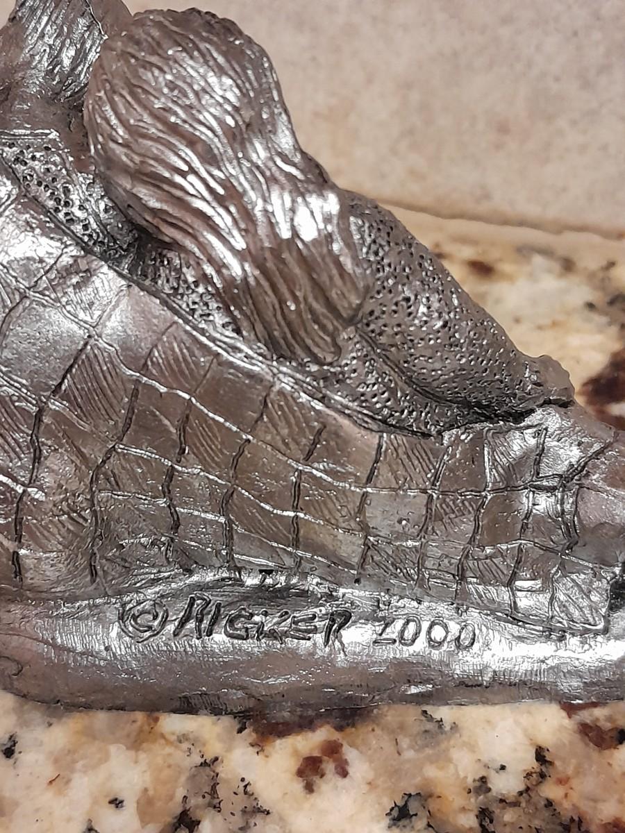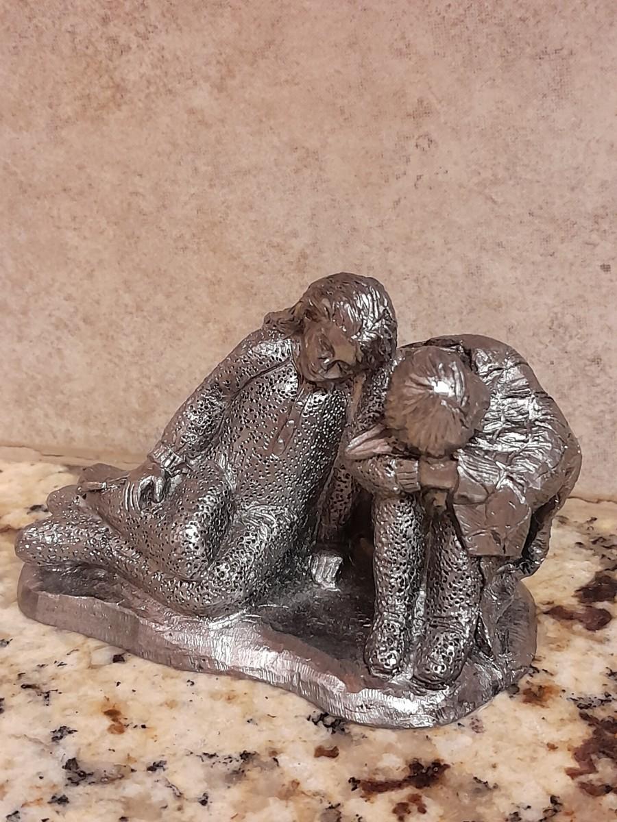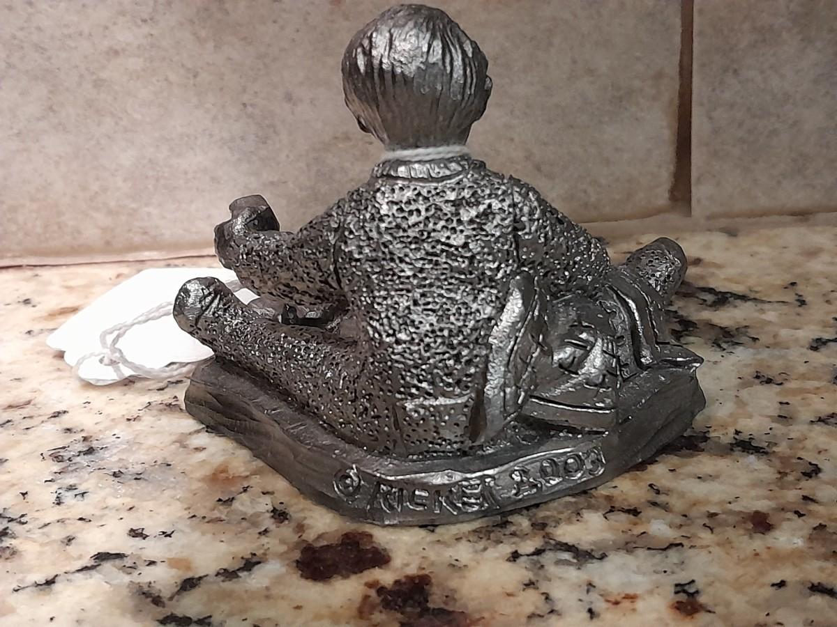 SIGNED AND NUMBERED RICKER PEWTER COLLECTABLES GIRL AND BOY SITTING AND BOY WITH BLOCKS