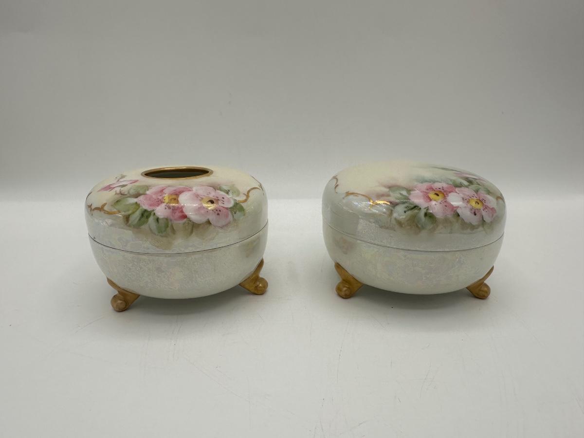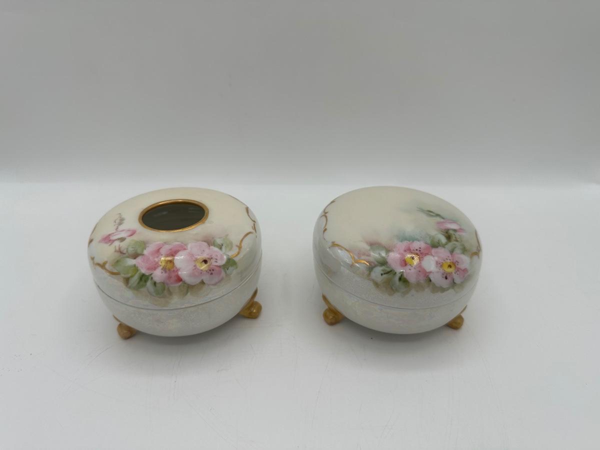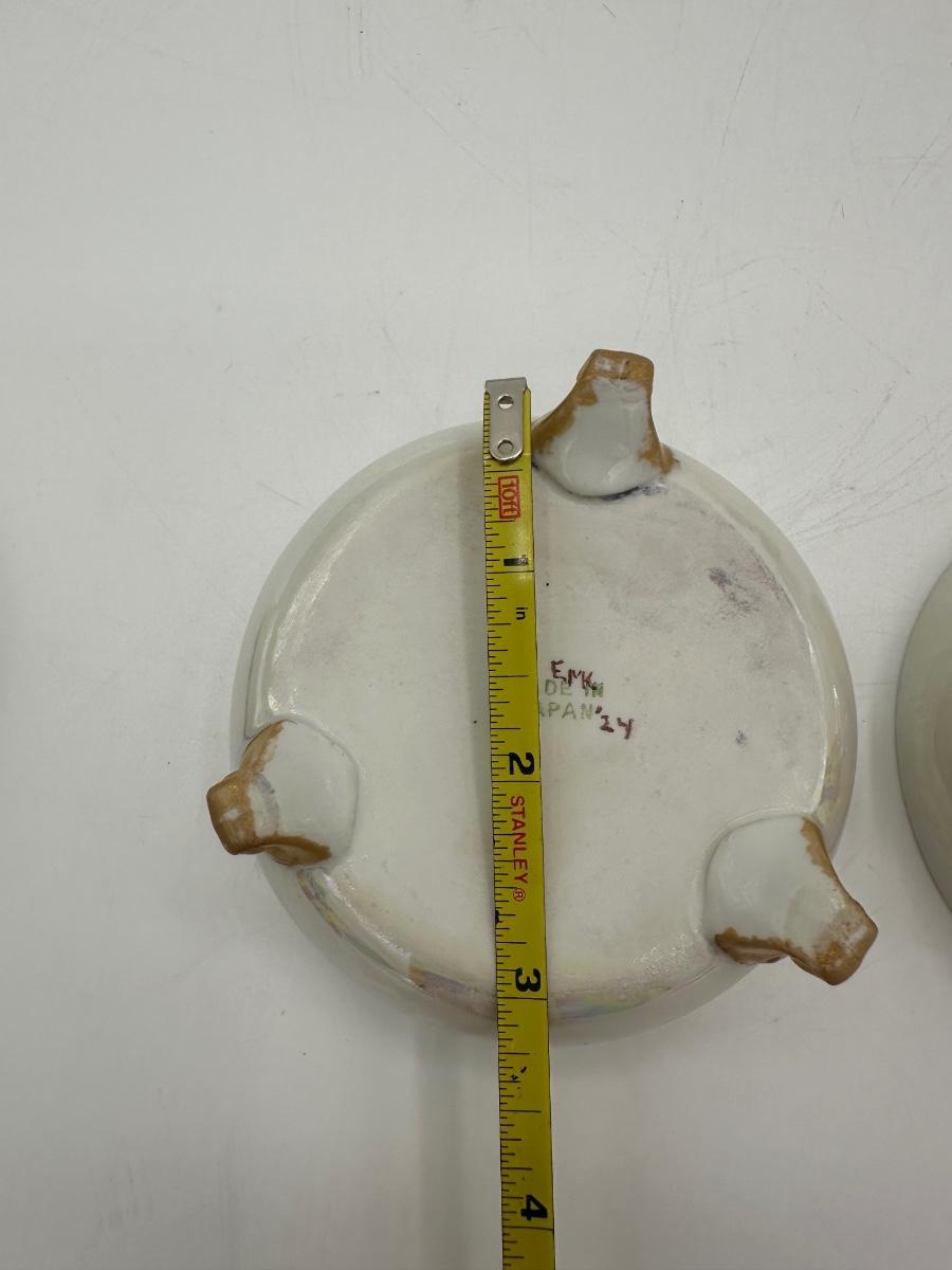 Signed Antique Japanese Hand Painted Hair Receiver Powder Jar Set