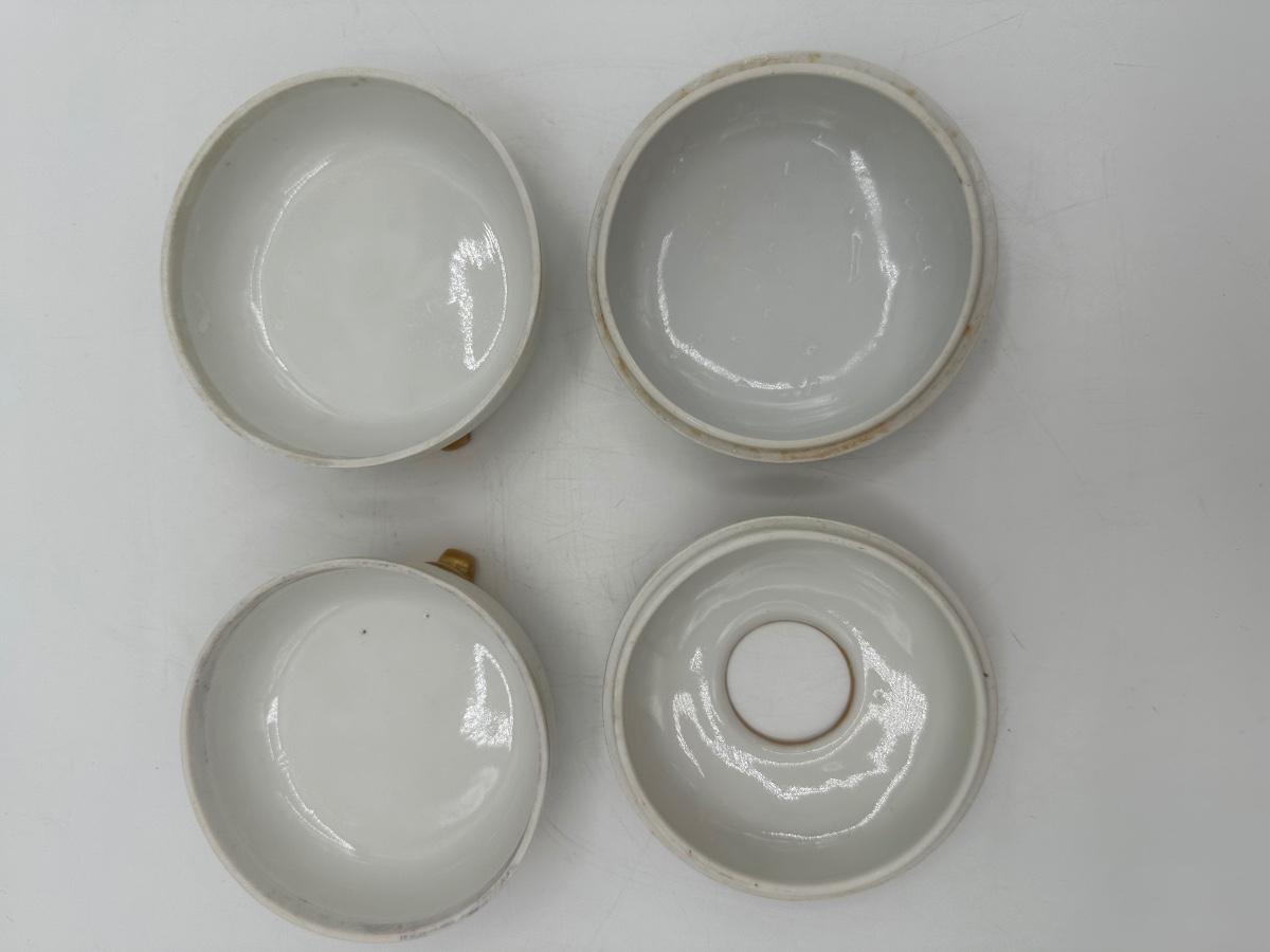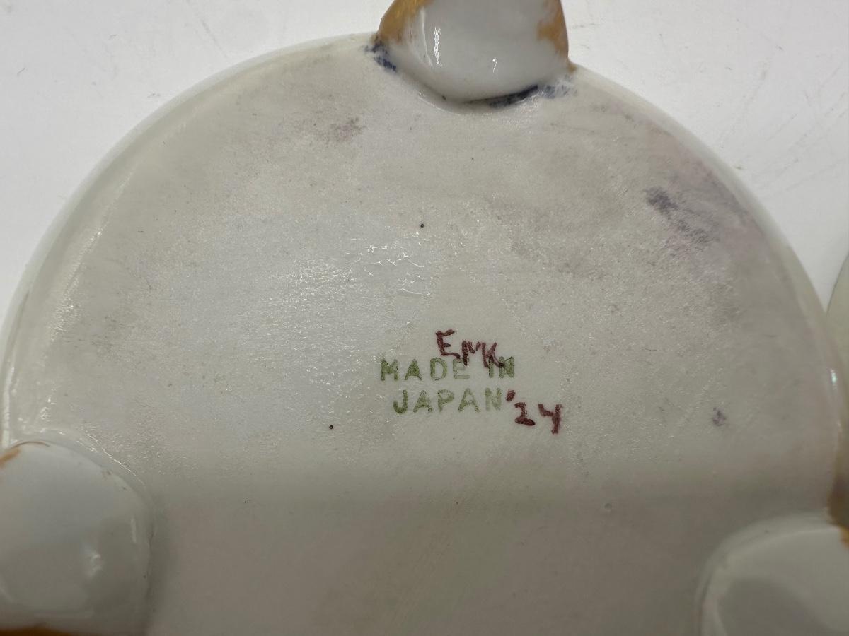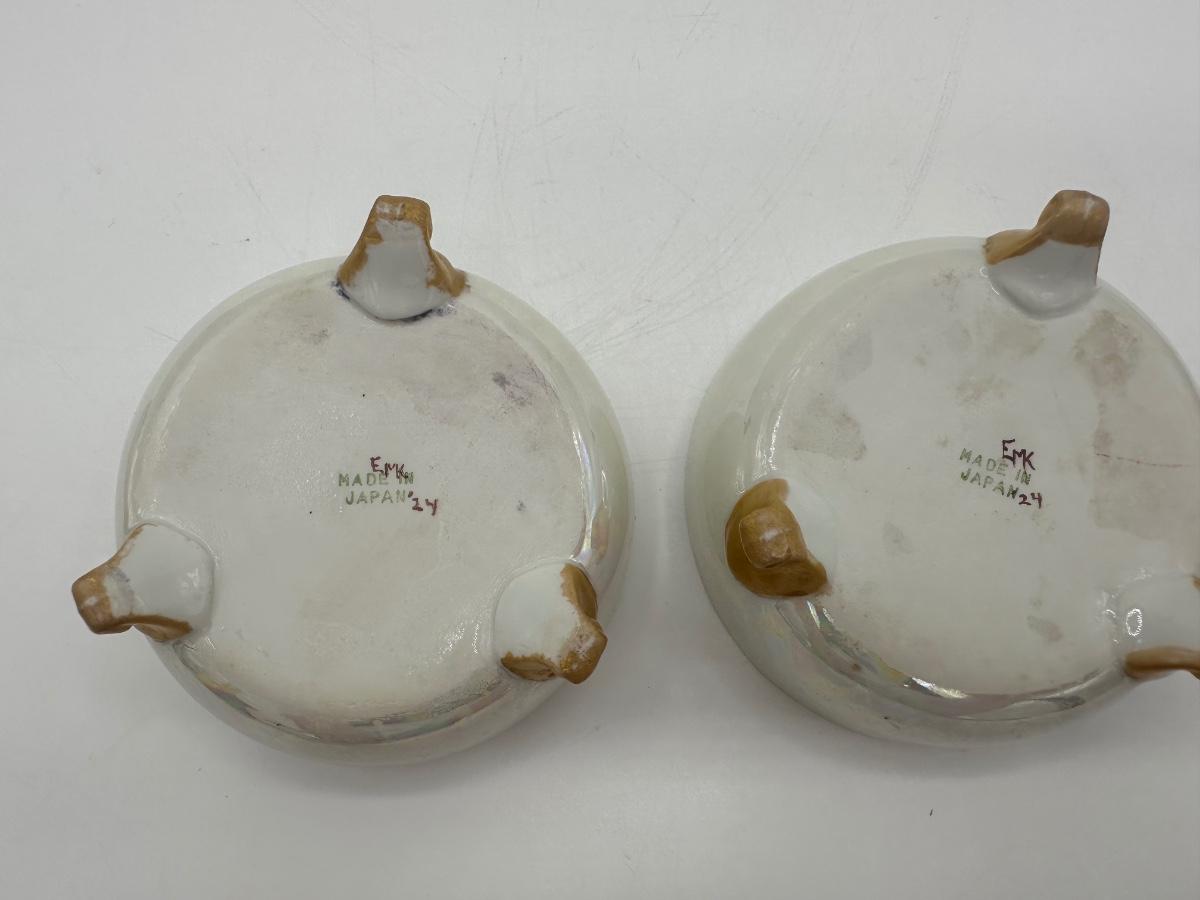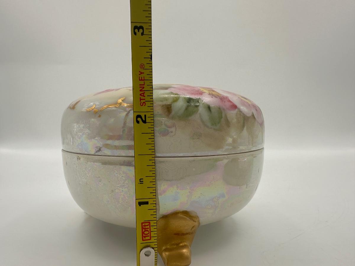 Signed Antique Japanese Hand Painted Hair Receiver Powder Jar Set