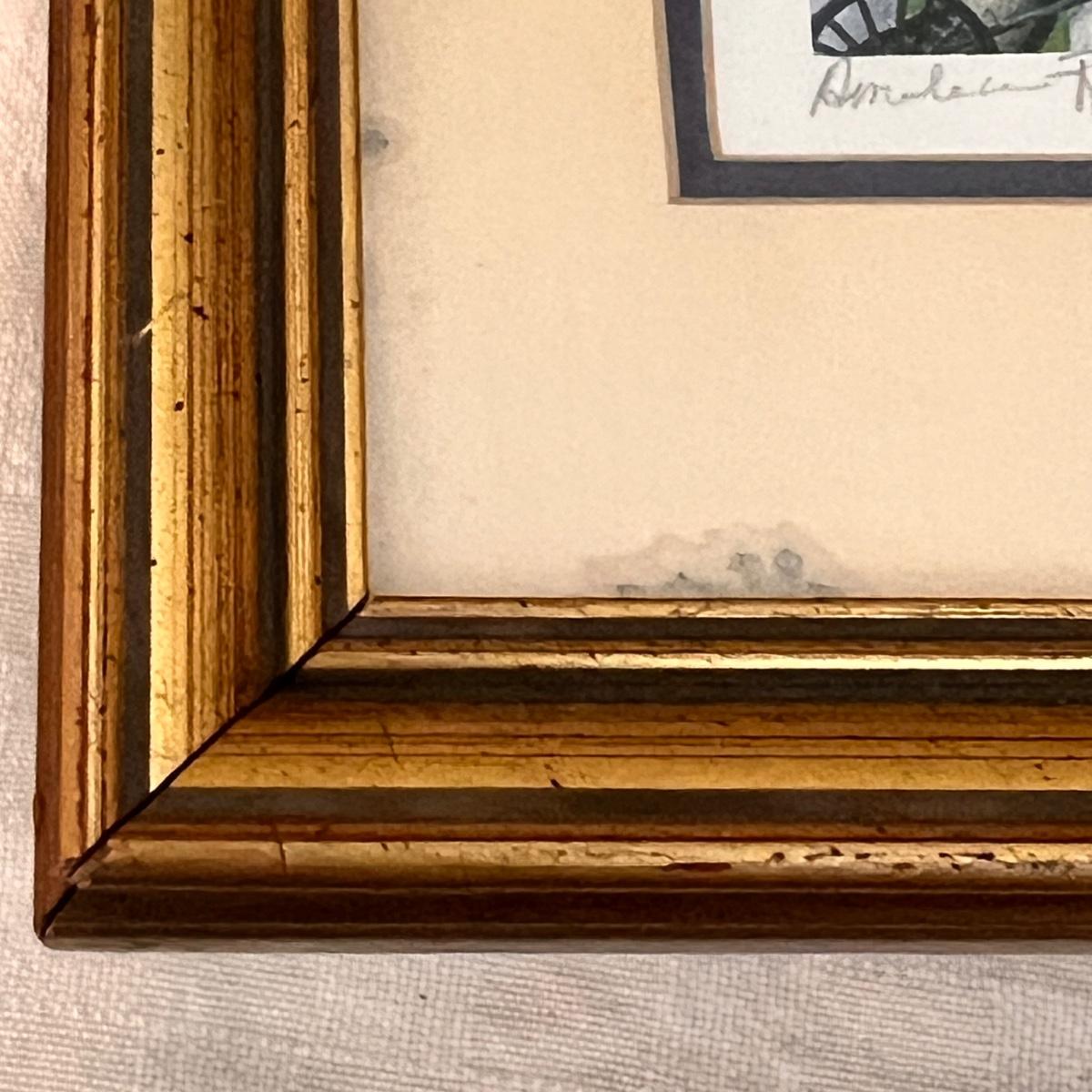 Vintage 1980's professionally framed and matted artwork signed Amelia Rose Smith. There is some small staining to the matte on the bottom as shown in pics.