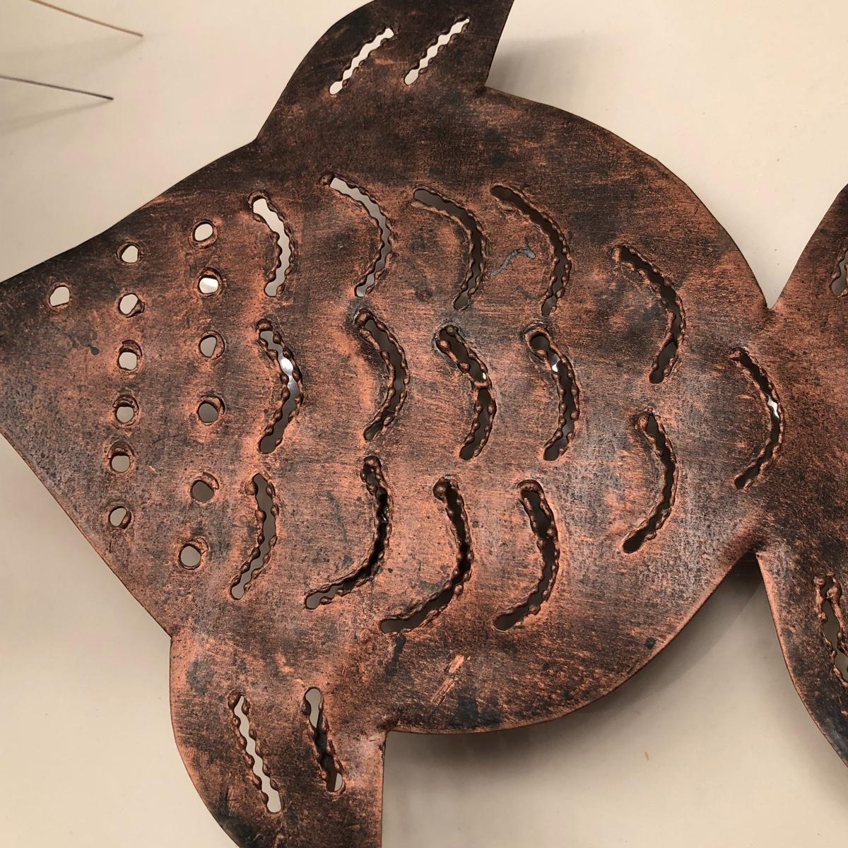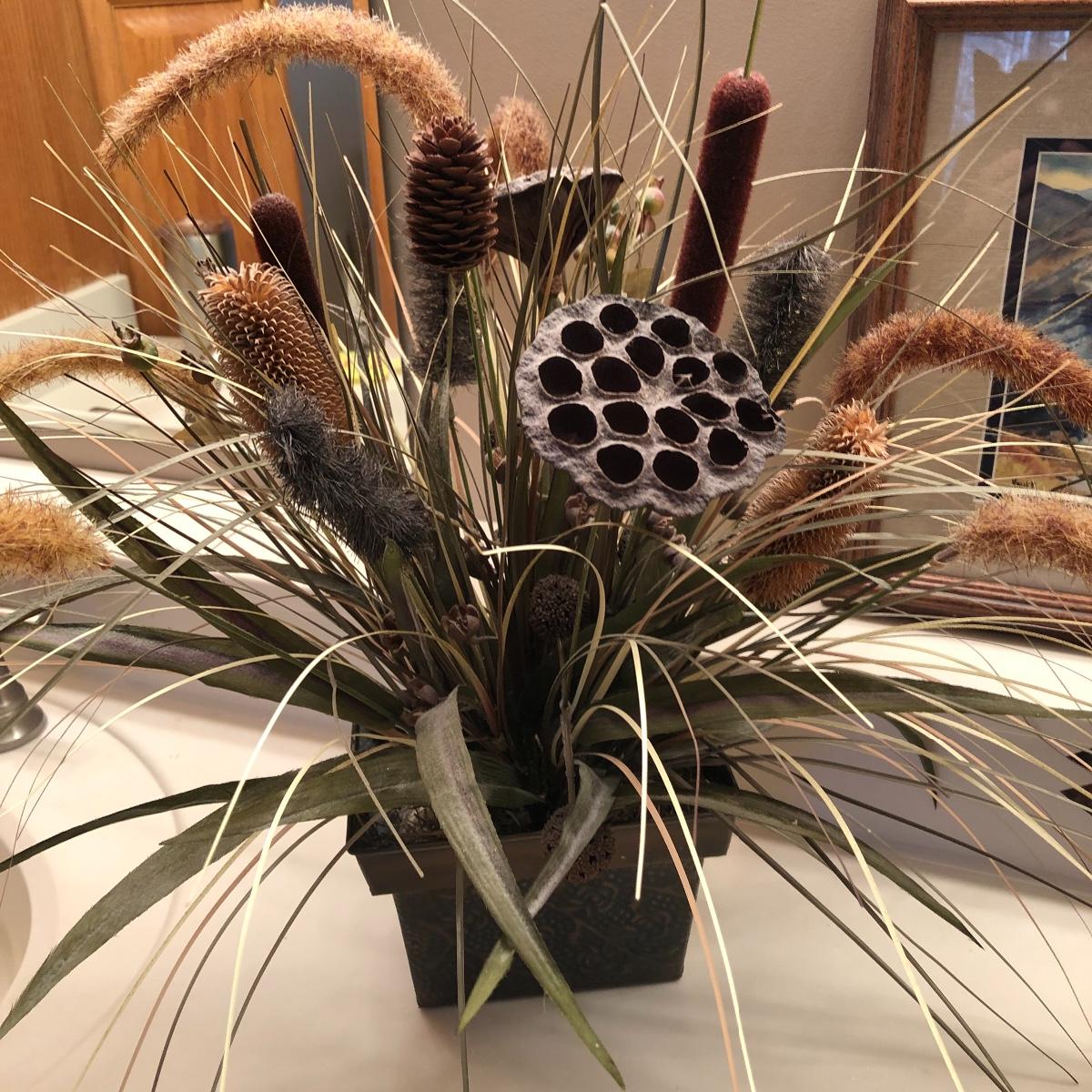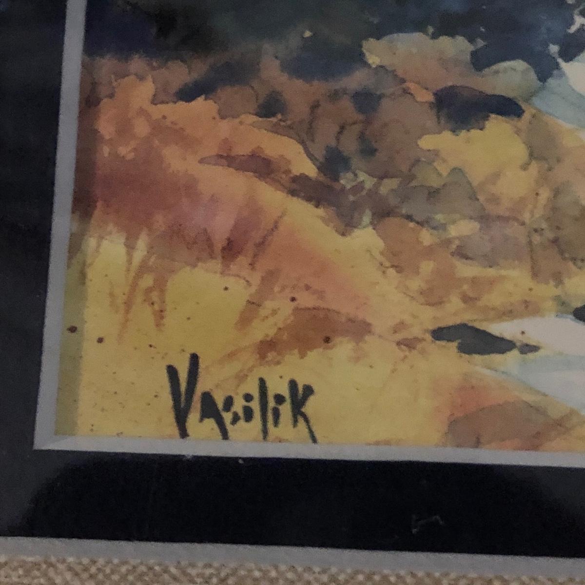 There are three items in this lot. The floral arrangement is about 22” tall with it’s base measuring 7” x 5” x 5”. The votive candle fish is 10.5” wide and is 10.5” tall. The painting is done by a local artist, Ann Vasilik. The frame measures 12” x 13.5”. The artwork measures 5” x 7”. Note how nicely the artwork is matted. Shipping Available.