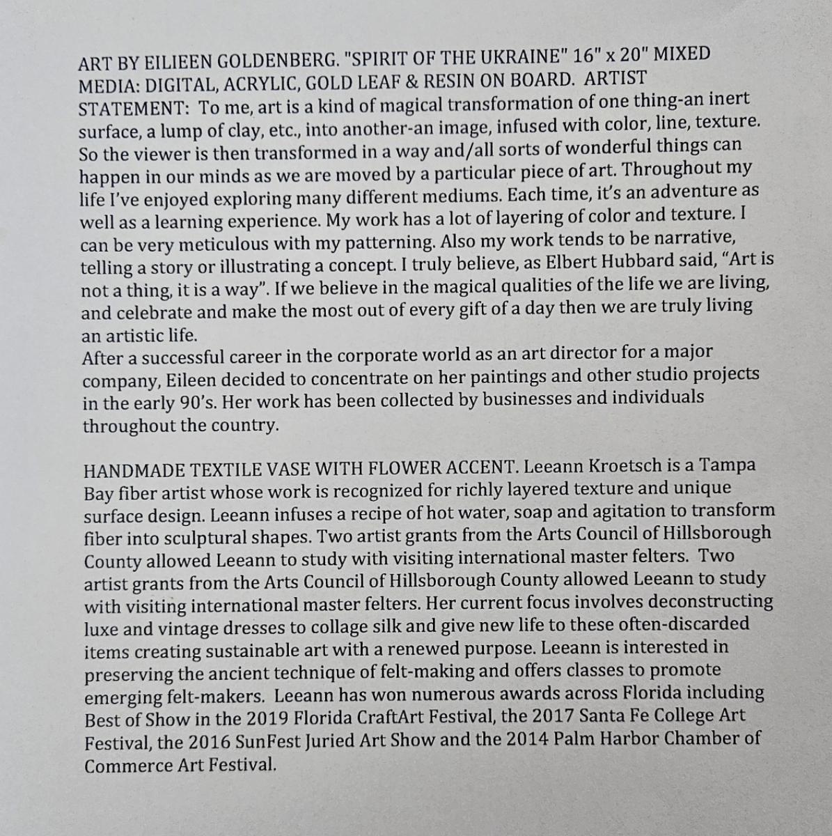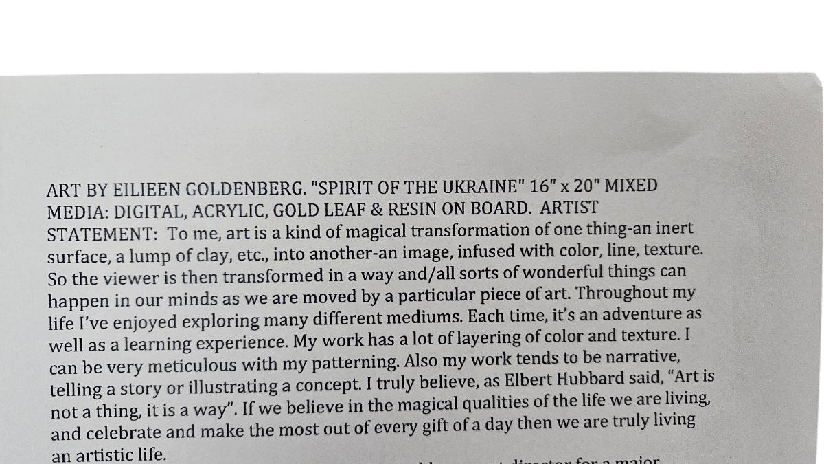 Signed Art By Eilieen Goldenburg " Spirit of The Ukraine " 16 x 20