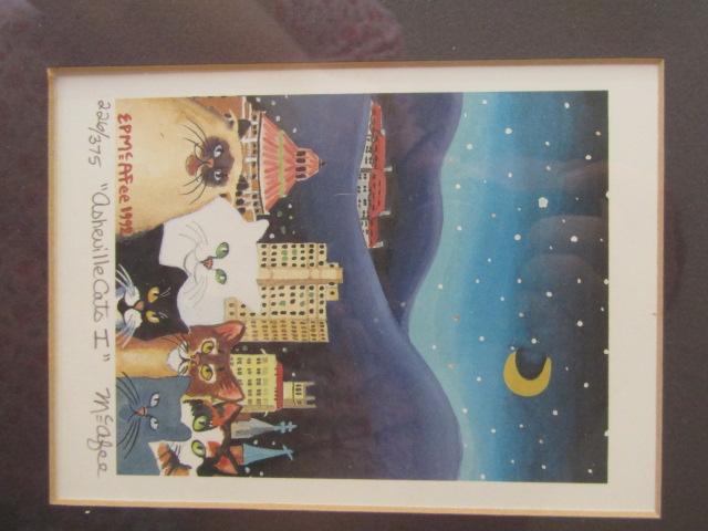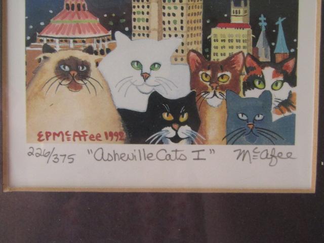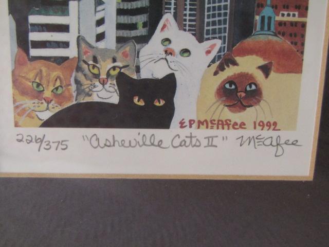 Signed Art Prints Limited Series 226/375 Cats of Asheville Triple Picture by E. P. McAfee