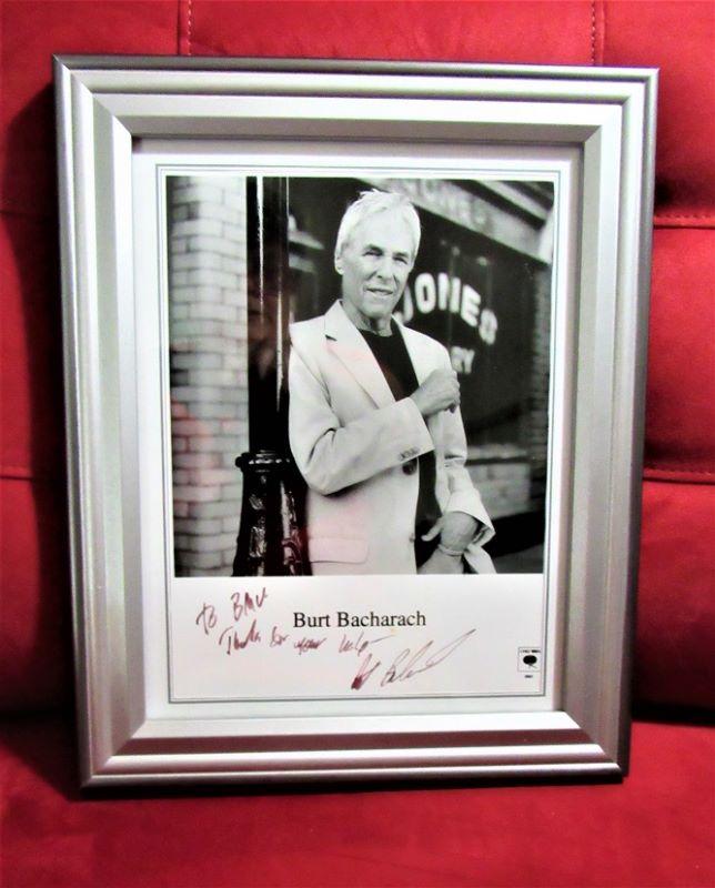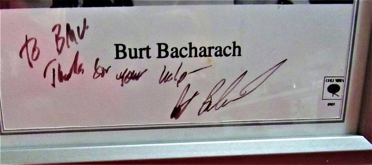 The handwritten note reads 'To Bruce(?) Thanks for your help. and is signed Burt Bacharach.