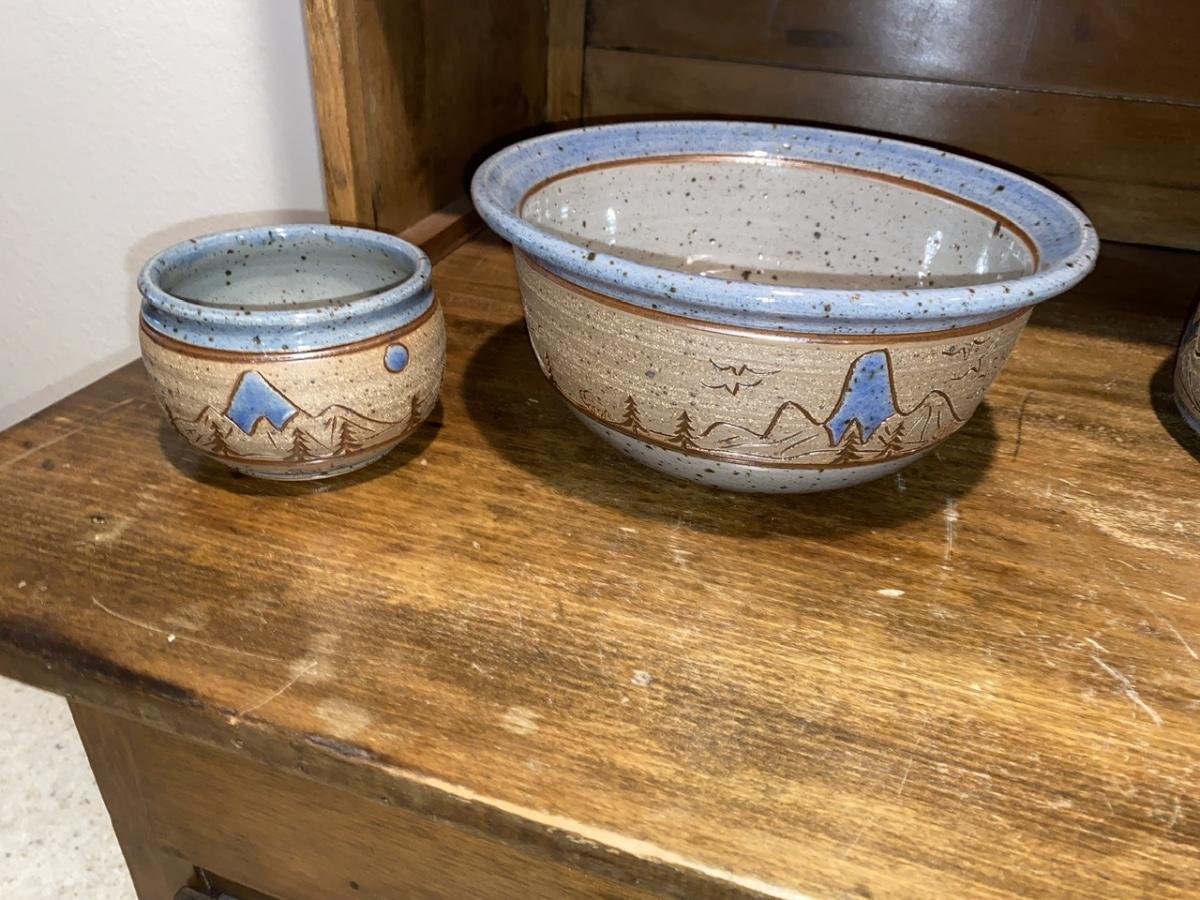 SIGNED "BARNES" KITCHEN POTTERY BOWLS