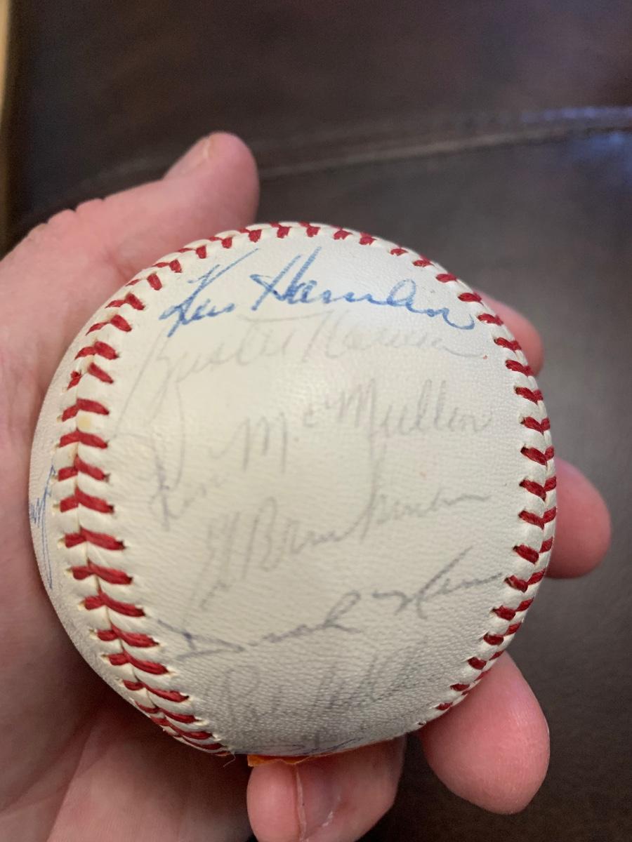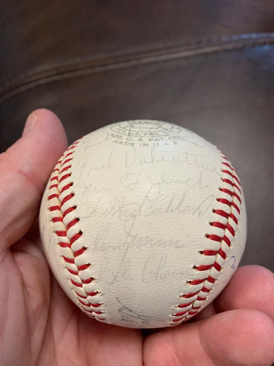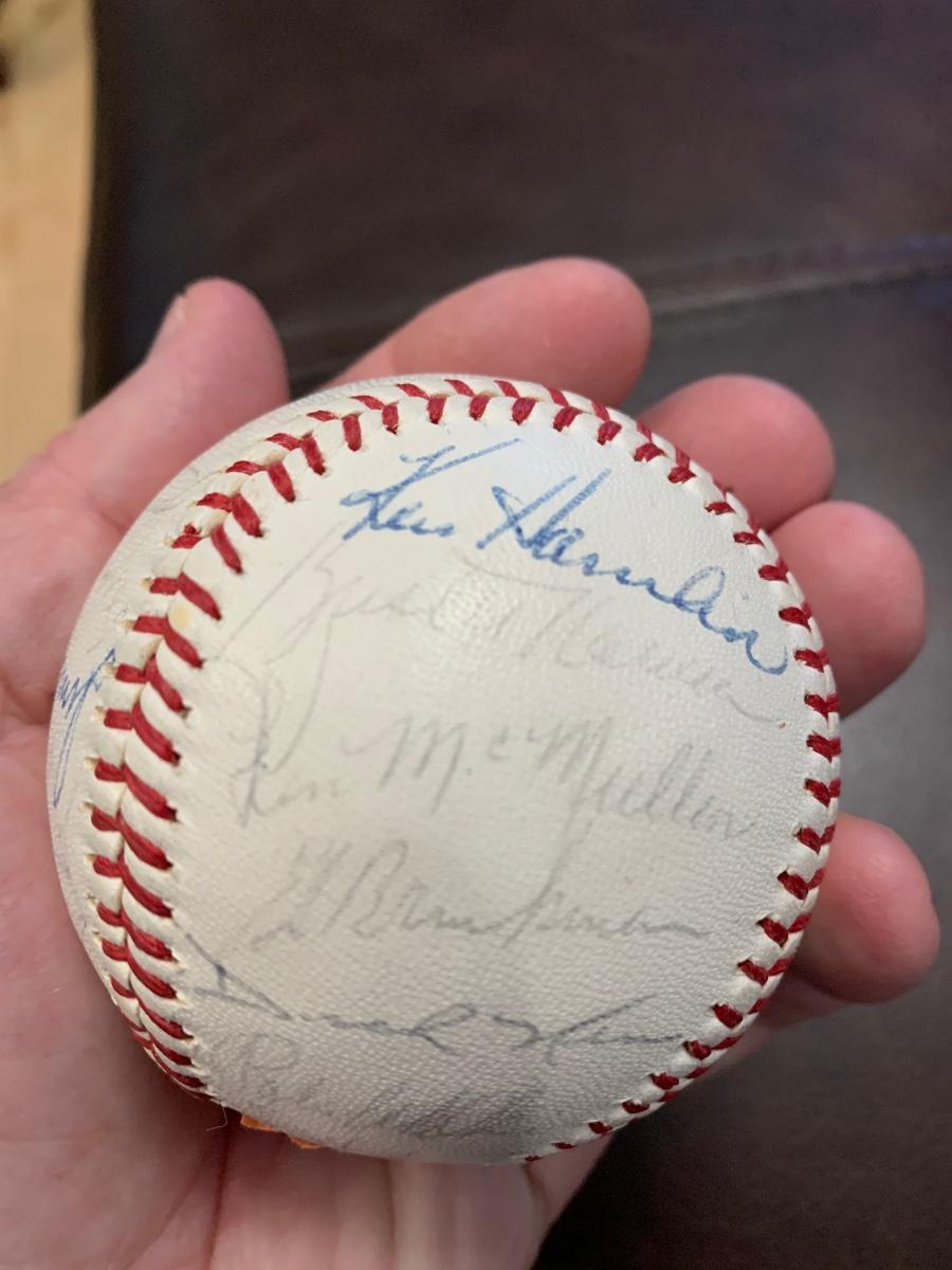 One of MANY vintage, autographed baseballs being offered in this wonderful estate. Hopefully you can make out a few of the names (we tried but even the names in the title may not be perfect) - when in doubt, think Brooklyn Dodgers, that seems to be the theme with his collecting. We assume everything in this home of a lifelong collector is authentic but we make no guarantees - you are buying as is, as found in the state. Please see MANY photos for content, condition and dimensions. Never a Buyers Premium or Credit Card Fee. All items start at just $10 and sell to the highest bidder with No Reserve. Good luck bidding!