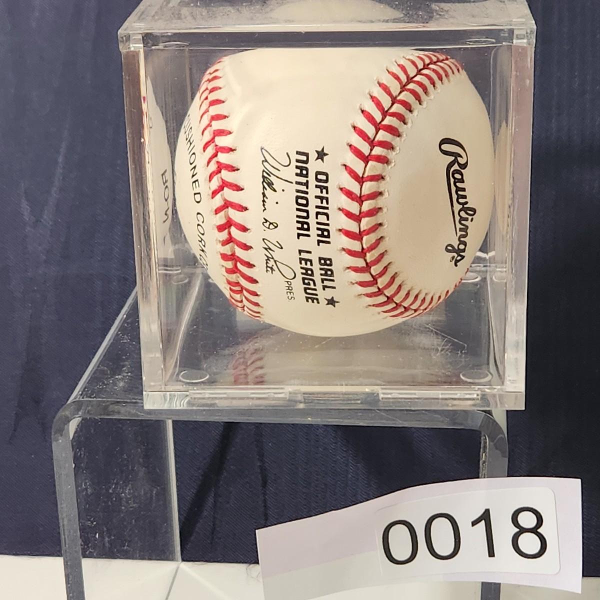 This is just one of many signed baseballs in this fantastic estate. The items in this collection were acquired over many years, most balls/bats/cards/ect signed right in front of the owner. Unless noted in the description. the item has no Certificate of Authenticity since, again - most were acquired at shows, games and many years attending spring training by this lifelong fan. Buying as is, as found in the estate and, as always, we make no guarantees and all sales are final. NEVER a Buyer's Premium or Credit Card Fee added. Nationwide shipping is available on this lot - all packages will be insured at purchasers cost to amount bid. Please note = We reserve the right to request Certified Funds to any/all invoice totals in excess of $1000. If you have any questions regarding these terms & conditions, please contact us before the final day of the auction as final hours of bidding can be very busy. Payment is due within 48 hours of invoicing. Good luck bidding!