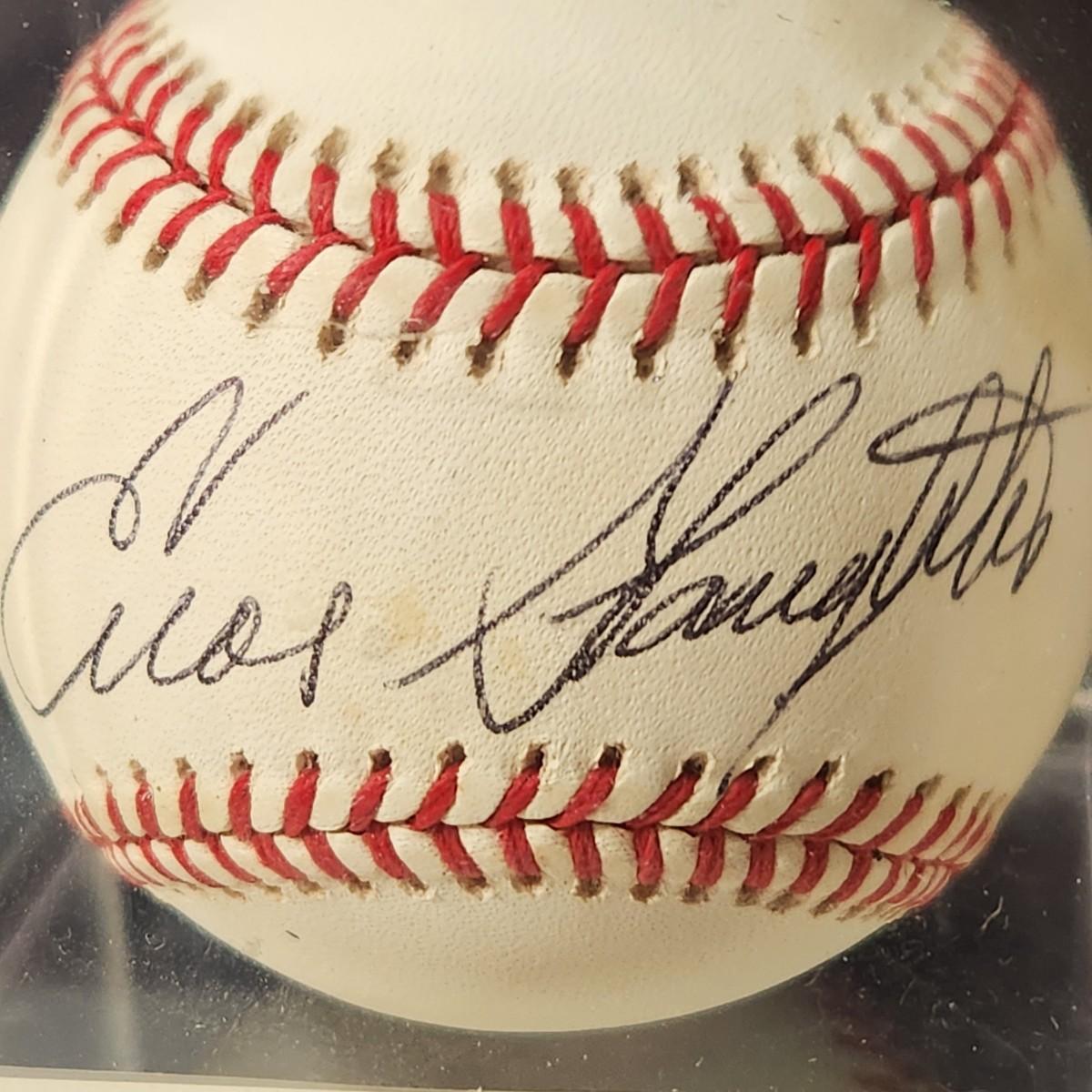 This is just one of many signed baseballs in this fantastic estate. The items in this collection were acquired over many years, most balls/bats/cards/ect signed right in front of the owner. Unless noted in the description. the item has no Certificate of Authenticity since, again - most were acquired at shows, games and many years attending spring training by this lifelong fan. Buying as is, as found in the estate and, as always, we make no guarantees and all sales are final. NEVER a Buyer's Premium or Credit Card Fee added. Nationwide shipping is available on this lot - all packages will be insured at purchasers cost to amount bid. Please note = We reserve the right to request Certified Funds to any/all invoice totals in excess of $1000. If you have any questions regarding these terms & conditions, please contact us before the final day of the auction as final hours of bidding can be very busy. Payment is due within 48 hours of invoicing. Good luck bidding!