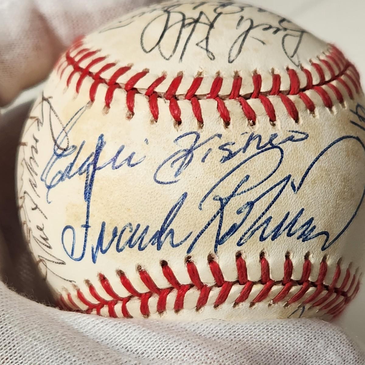 This is just one of many signed baseballs in this fantastic estate. The items in this collection were acquired over many years, most balls/bats/cards/ect signed right in front of the owner. Unless noted in the description. the item has no Certificate of Authenticity since, again - most were acquired at shows, games and many years attending spring training by this lifelong fan. Buying as is, as found in the estate and, as always, we make no guarantees and all sales are final. NEVER a Buyer's Premium or Credit Card Fee added. Nationwide shipping is available on this lot - all packages will be insured at purchasers cost to amount bid. Please note = We reserve the right to request Certified Funds to any/all invoice totals in excess of $1000. If you have any questions regarding these terms & conditions, please contact us before the final day of the auction as final hours of bidding can be very busy. Payment is due within 48 hours of invoicing. Good luck bidding!