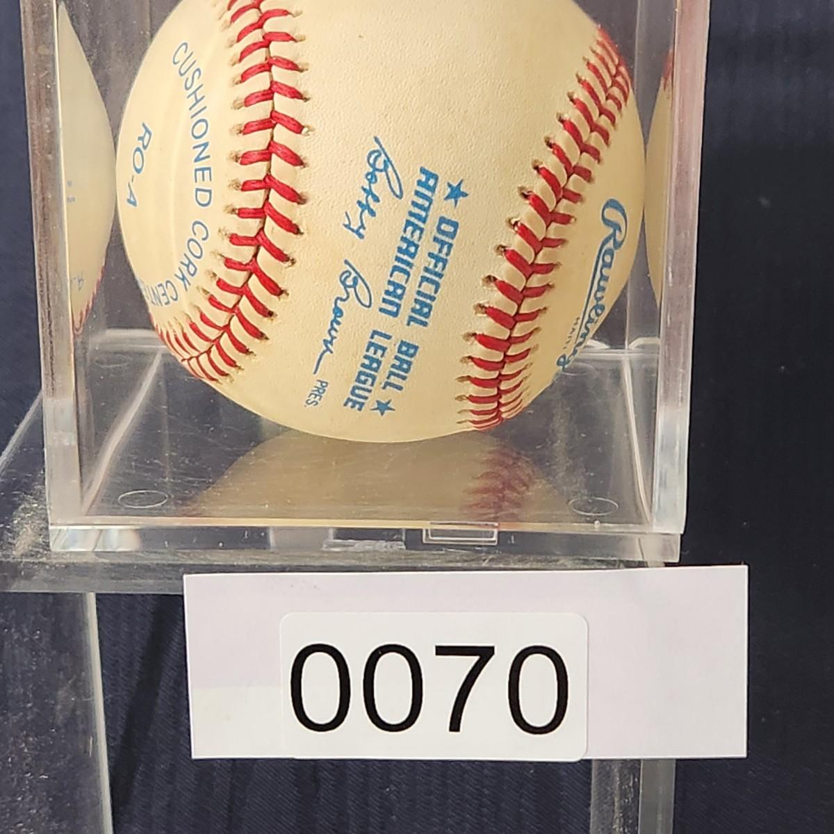 This is just one of many signed baseballs in this fantastic estate. The items in this collection were acquired over many years, most balls/bats/cards/ect signed right in front of the owner. Unless noted in the description. the item has no Certificate of Authenticity since, again - most were acquired at shows, games and many years attending spring training by this lifelong fan. Buying as is, as found in the estate and, as always, we make no guarantees and all sales are final. NEVER a Buyer's Premium or Credit Card Fee added. Nationwide shipping is available on this lot - all packages will be insured at purchasers cost to amount bid. Please note = We reserve the right to request Certified Funds to any/all invoice totals in excess of $1000. If you have any questions regarding these terms & conditions, please contact us before the final day of the auction as final hours of bidding can be very busy. Payment is due within 48 hours of invoicing. Good luck bidding!