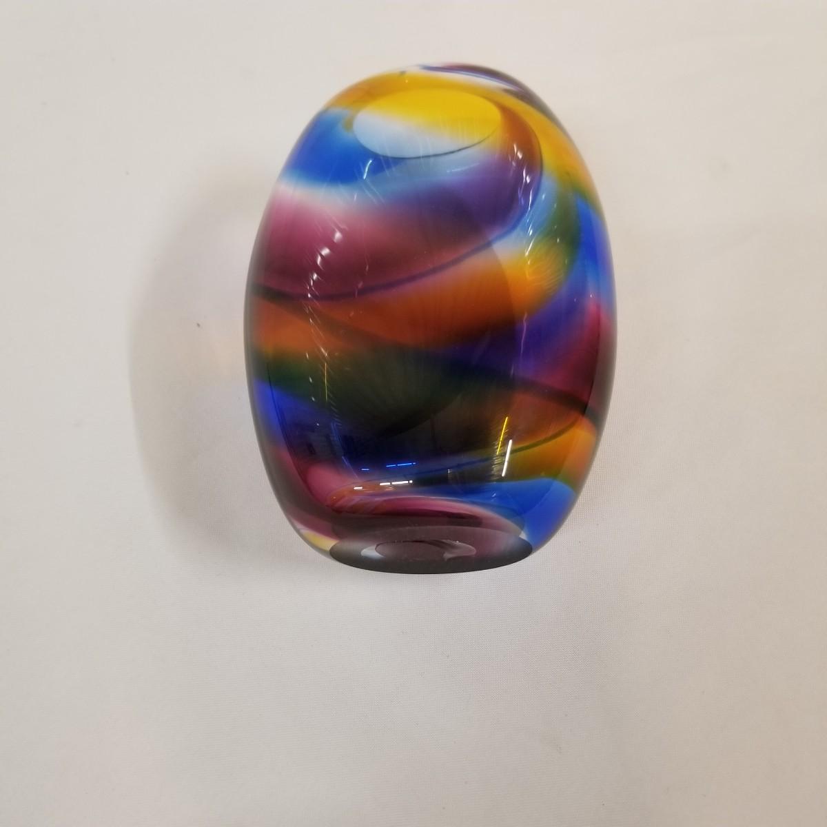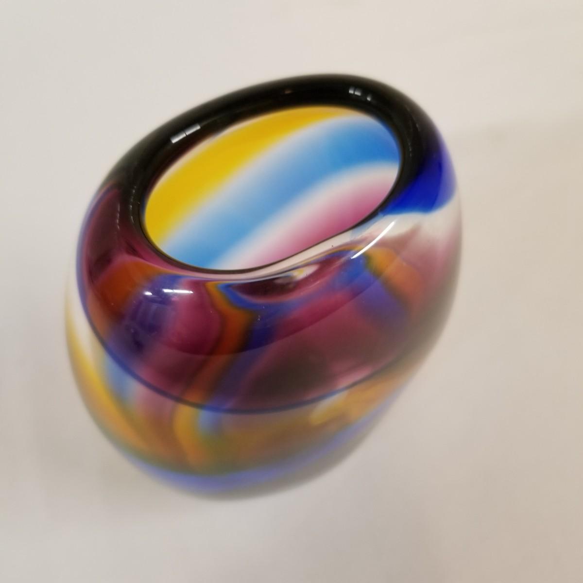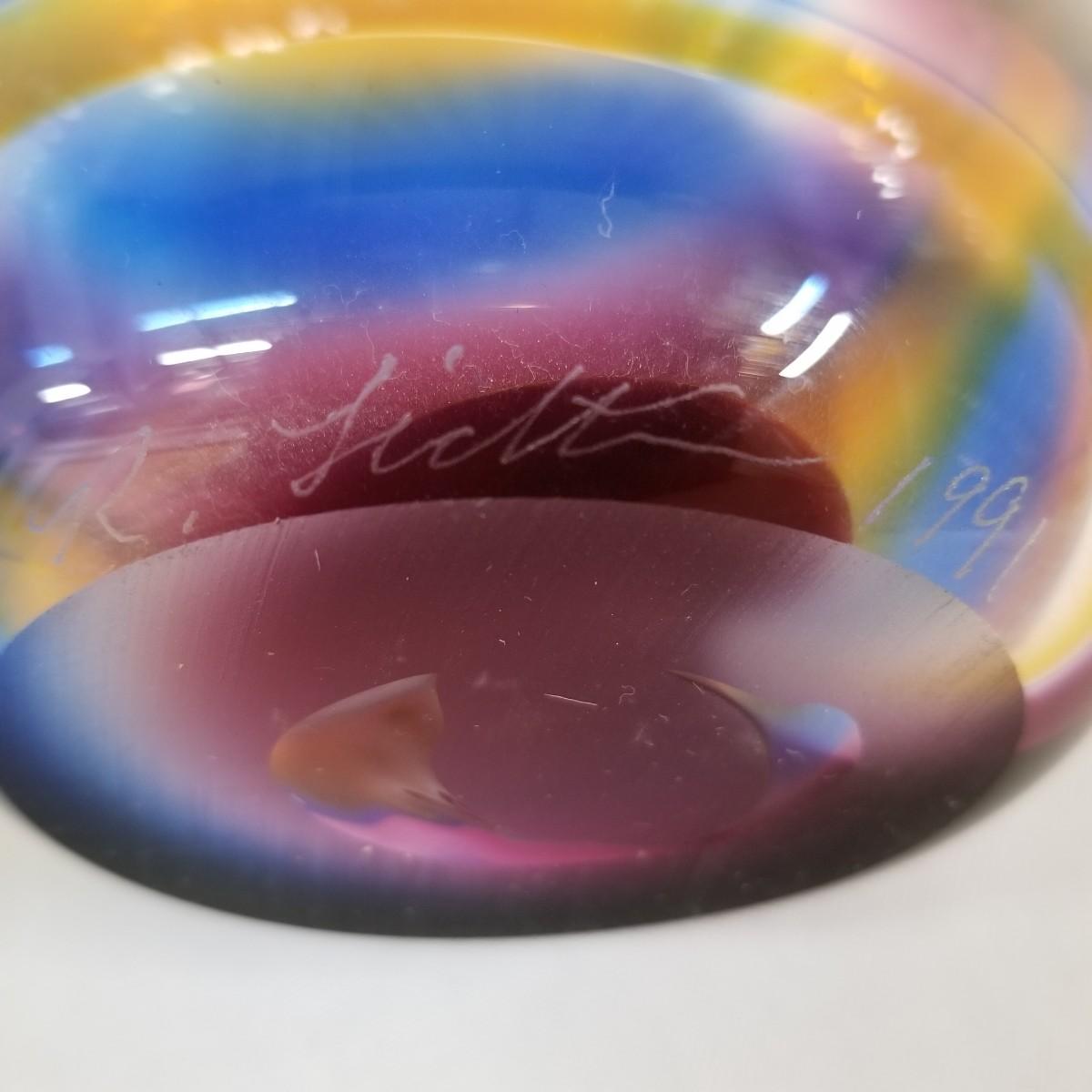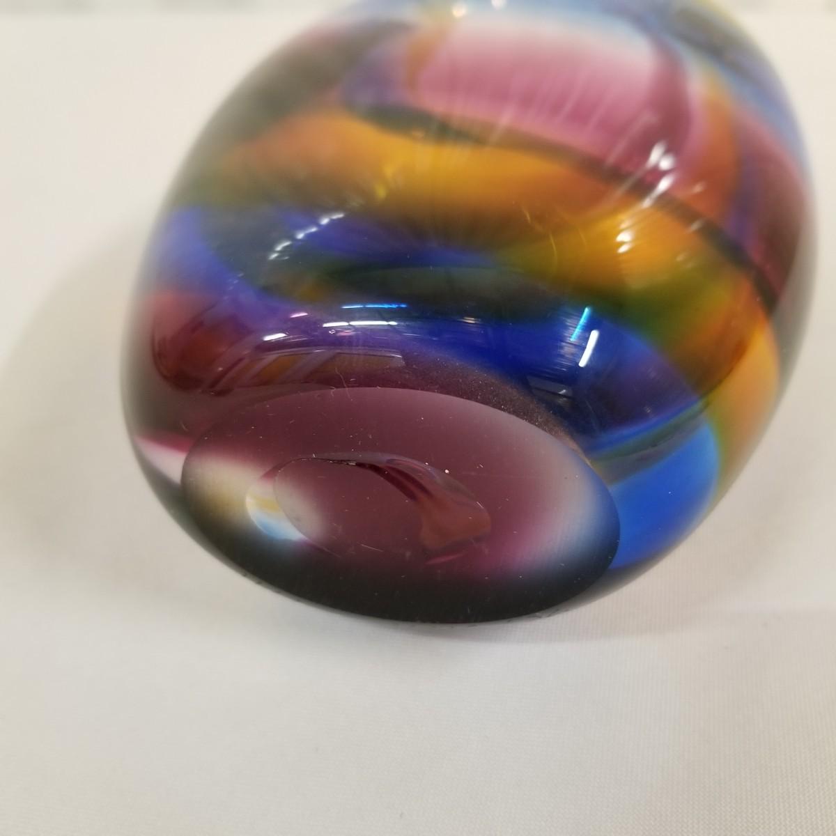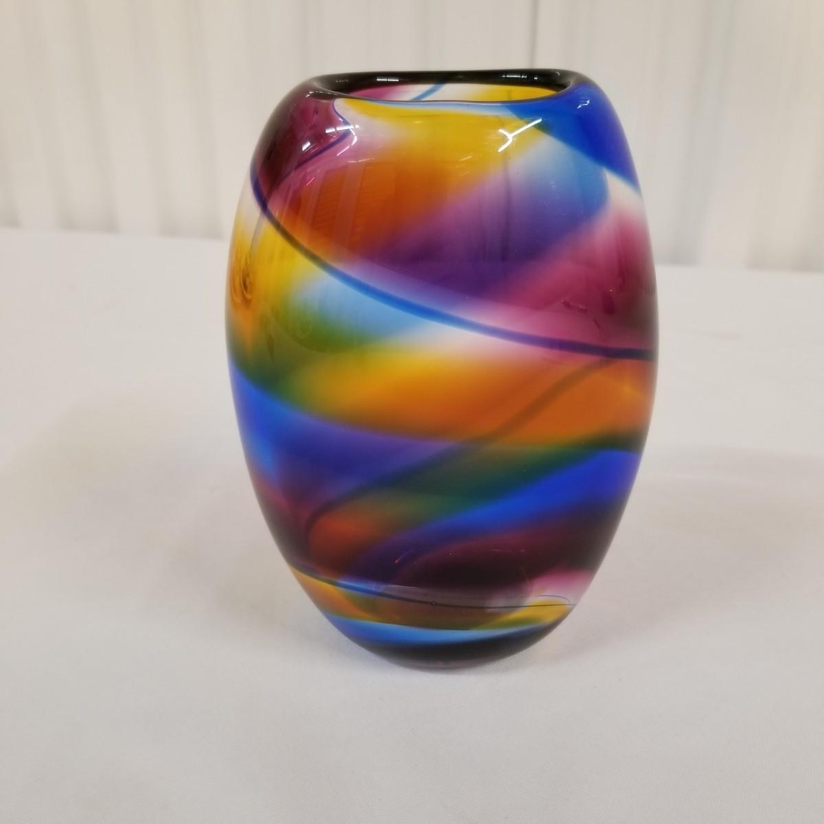 A beautiful blown glass vase with multi color accents. Piece is 4.5"x7"x3" and is signed ' R. LICHT 1991'.  Glass is free of nicks and scratches. See photos for detail.  Shipping available.